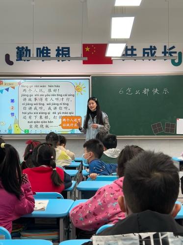 从教学到班级管理,从早自习到课间操,我和这群可爱的小朋友渐渐熟悉起来,他们会在课间热情地申请给我“捶背”按摩,他们会在我鞋带掉了的时候争先恐后地帮我“系鞋带”,我想,我们已经正式成为了朋友!