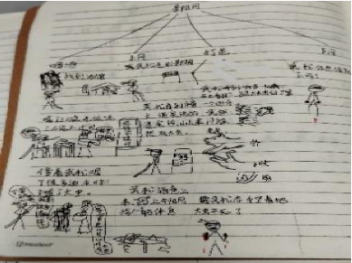 然后就是批改作业。其实对我来说,批改作业算是在实习时间中占比比较大的一部分了,目前我需要批改的是孩子们的家庭作业本、同步练习,还有语文学习单。在批改作业的过程中我发现有的孩子真的很有创造力,比如在学习第二单元的草船借箭、景阳冈、猴王出世时,指导老师布置的作业是绘制情节图,绝大部分的他们都非常有创造力,在完整地叙述出故事情节的同时还能联想故事背景等来进行创作。