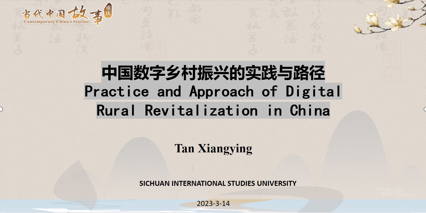 “各美其美,美人之美,美美与共,天下大同”。向世界讲好中国故事,让世界体会中国深厚底蕴与博大精深;展示中国多元文化,以期加强彼此交流合作,共创美好未来。2023年3月14日下午,“缙云知华”大讲坛专家讲座第十四期在四川外国语大学成功举办,主题为“中国数字乡村振兴的实践与路径”,由四川外国语大学国际法学与社会学公司副教授谭湘颖老师主讲。讲座以线下线上结合的形式展开,四川外国语大学和其他高校员工共计200余人参加讲座。