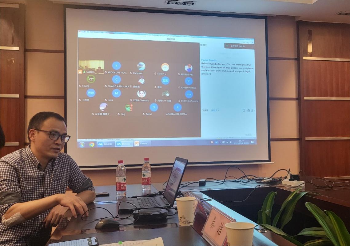 讲座结束后,线上线下的国际员工纷纷向陆教授请教,进行学术讨论,陆教授耐心解答同学们的问题。关于营利法人和非营利法人的区别,陆教授解答道:有两点不同,第一,设立目的不同,营利法人是指以取得利润并分配给股东等出资人为目的成立的法人,非营利法人是指为非营利目的成立的法人;第二,财产分配不同,为公益目的成立的非营利法人终止时,不得分配剩余财产。营利法人终止时,清偿债务后的剩余财产按照法定程序分配。此外,同学们还对中国最高人民法院设置的案例指导制度产生了浓厚的兴趣,并就自己国家的相关制度与在座的师生进行了交流和讨论。
