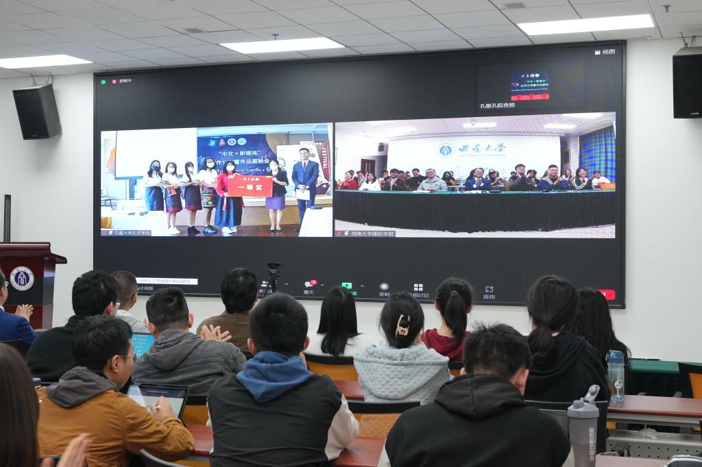 短视频展映环节,五组参赛选手紧紧围绕“泰国文化5F理念”,从饮食(food)、电影(film)、时装(fashion)、传统游戏(fighting)、传统节日(festival)五个方面,借助新媒体技术,以全新的表现形式展现中泰两国文化魅力。评委从“表现、创意、问答、语言”等四个方面对五组选手进行综合打分。最终,主题为传统游戏的小组凭借视频创新斩获一等奖,节日组荣获二等奖,美食、电影、时装组获得三等奖。