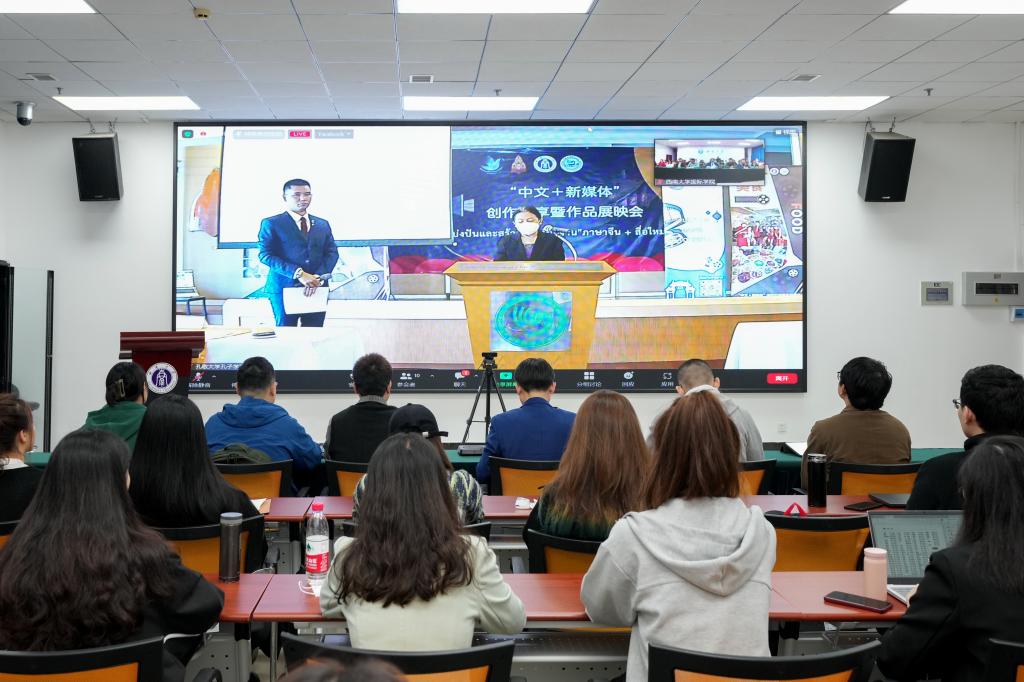 2022年10月14日10点,由泰国文化部与孔敬大学孔子公司联合发起,孔敬大学孔子公司主办,泰国媒体发展基金会、孔敬大学教育公司、sunbet申搏官网等相关单位共同参与的《以媒为介,联通中泰美好未来》主题短片比赛暨创作分享会在孔敬大学孔子公司含弘讲堂隆重举行。中华人民共和国驻孔敬副总领事杨宁,泰国孔敬大学领导,泰国孔敬大学孔子公司中方经理耿军等出席本次活动。公司党委书记刘猛受邀在线出席本次活动并担任活动评委嘉宾,公司教师代表、2021级与2022级汉语国际教育硕士研究生在紫云楼317会议室线上参与此次分享会。《世界青年说》节目的泰国代表韩冰担任活动主持。