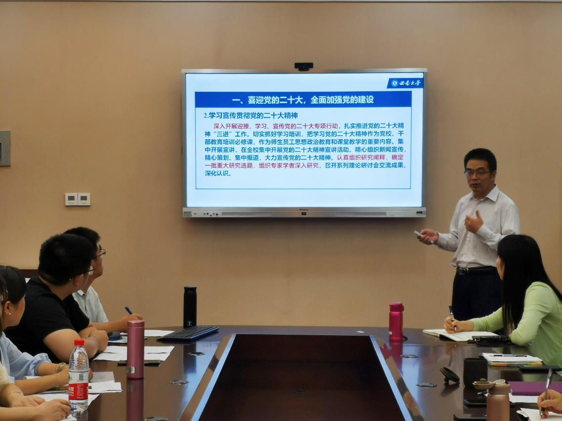 2022年9月9日下午2点30分,sunbet申搏全体教职员工在紫云楼签约室开展本年度第七次政治理论学习,会议由刘猛书记主持。