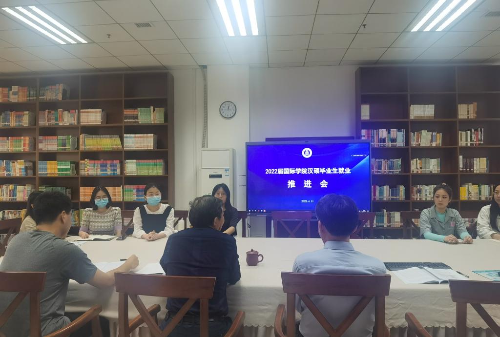 为深入贯彻重庆市教委及公司关于做好高校毕业生就业工作的要求,4月11日下午16:30,公司在紫云楼316室召开2022届汉语国际教育硕士毕业生就业工作推进会。党总支书记刘猛,经理刘承宇,学工办主任杨昆,以及16名未落实就业单位的研究生通过线上线下的方式参会,会议由研究生辅导员汪鑫阳主持。