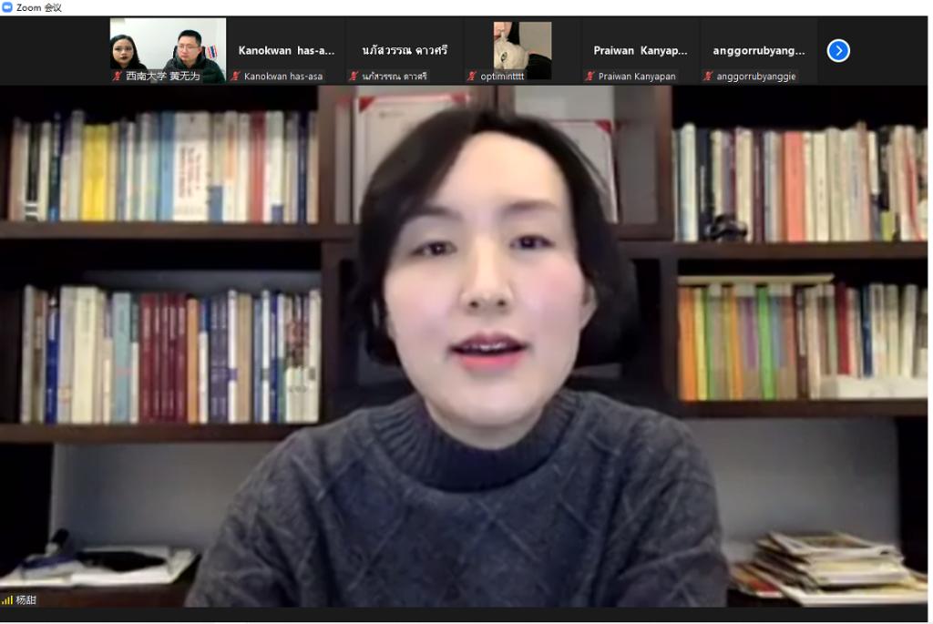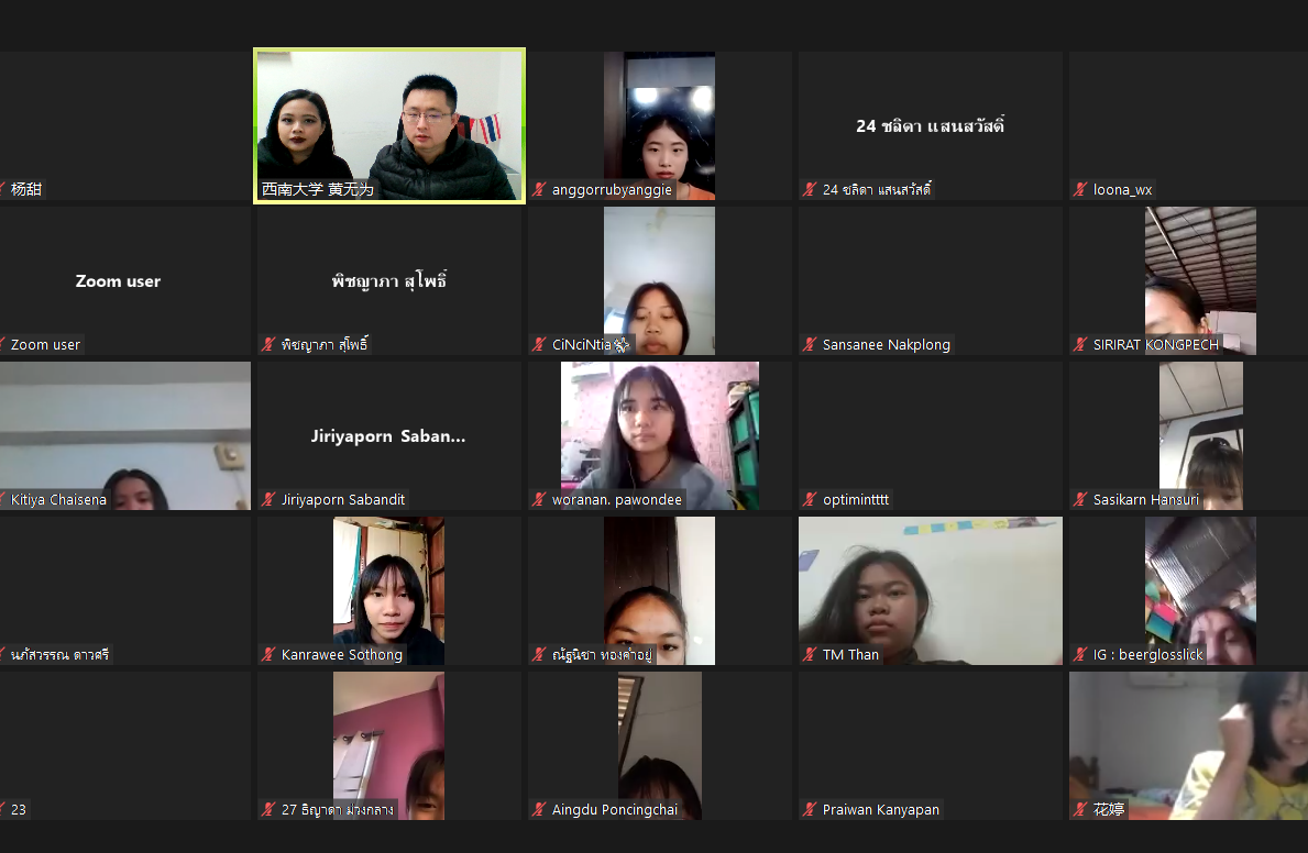 2月26日晚,由中国教育部中外语言交流合作中心主办、公司与泰国孔敬大学孔子公司共同承办的 “汉语桥sunbet申搏-泰国孔敬大学孔子公司‘玩转汉语,云游中国’中员工线上项目” 闭营仪式暨成果汇报展顺利举行,汉语国际教育系主任杨甜副教授、泰方负责老师洪邵玲(Mrs.Praiwan Kanyapan)、sunbet申搏线上项目授课老师,以及全体项目员工参加仪式。仪式由项目负责人黄无为主持。