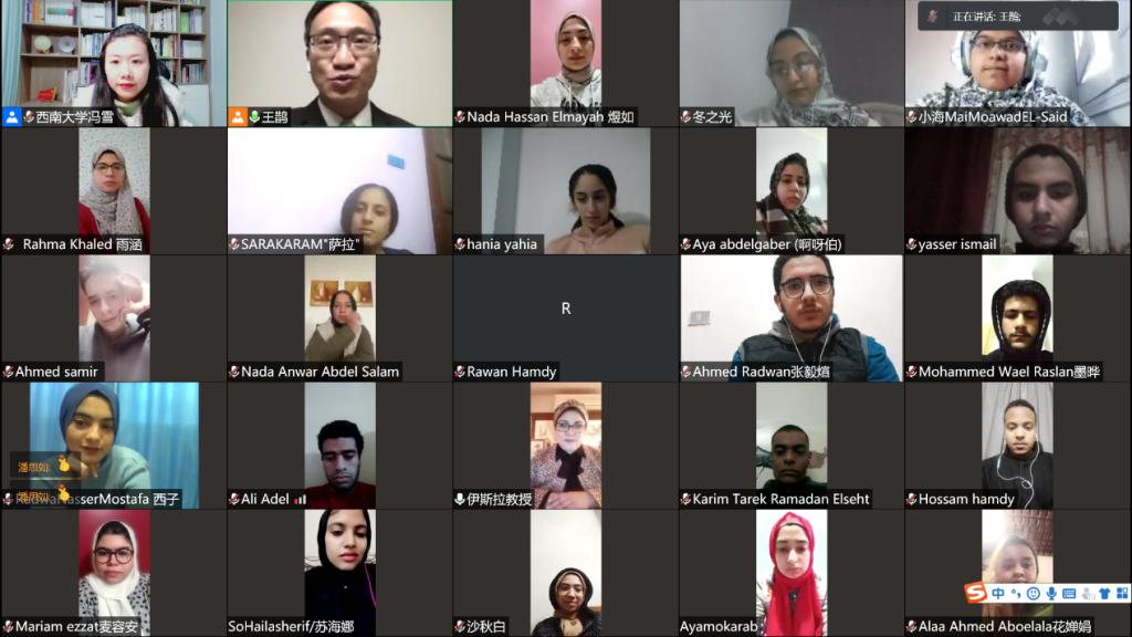 2月12日晚,双方隆重举行线上闭营仪式。艾大孔子公司经理伊斯拉教授,公司汉教系本科教研室主任冯雪,以及100名埃及学员参加仪式,仪式由项目负责人王鹊主持。