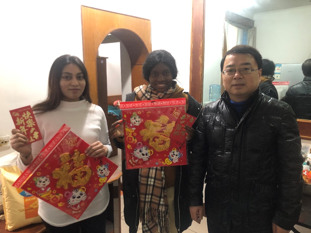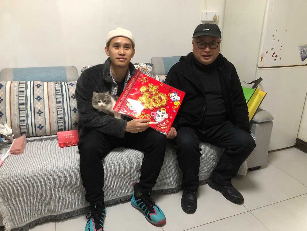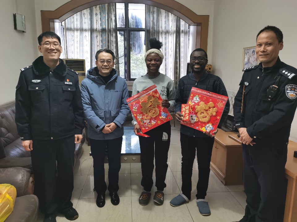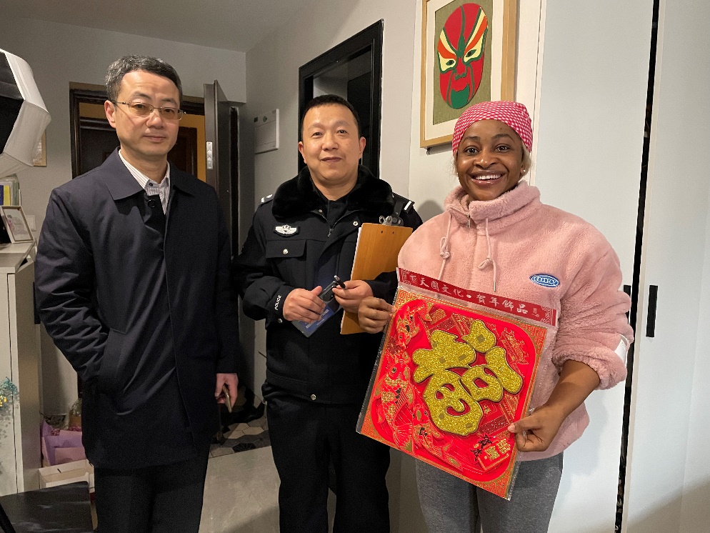 慰问采取公司领导、出入境民警、辖区民警、社区干部四位一体联动方式,公司领导及相关工作人员分成5组,与出入境民警、天生派出所、朝阳派出所民警,奔月路社区干部一起,逐一看望住在朝阳、天生、北温泉辖区的国际员工,询问他们的学习、生活情况,嘱咐他们加强防护,多与家人联系。鼓励他们合理利用时间认真学习,取得更好的成绩。公司领导为国际员工送上福字和精美的新年贺卡,祝福他们在新的一年不断进步,在学业上更上一层楼。