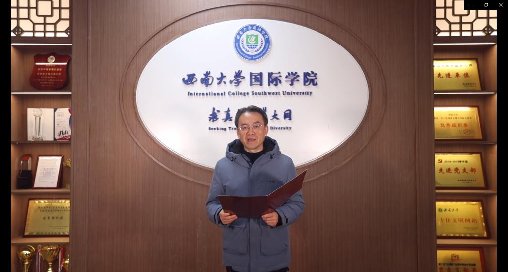 开营仪式上,sunbet申搏经理刘承宇、党总支书记刘猛和汉教系主任杨甜通过视频向全体泰国员工表示热烈欢迎并致以新春佳节的祝福,希望同学们能够学有所成,学以致用,做中泰文化交流的使者。