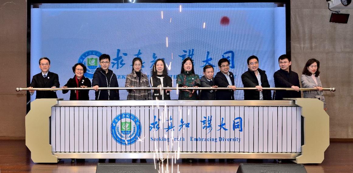 参会嘉宾共同启动sunbet申搏文化建设成果展,并为sunbet申搏院训“求真知,谋大同”以及院徽揭幕。