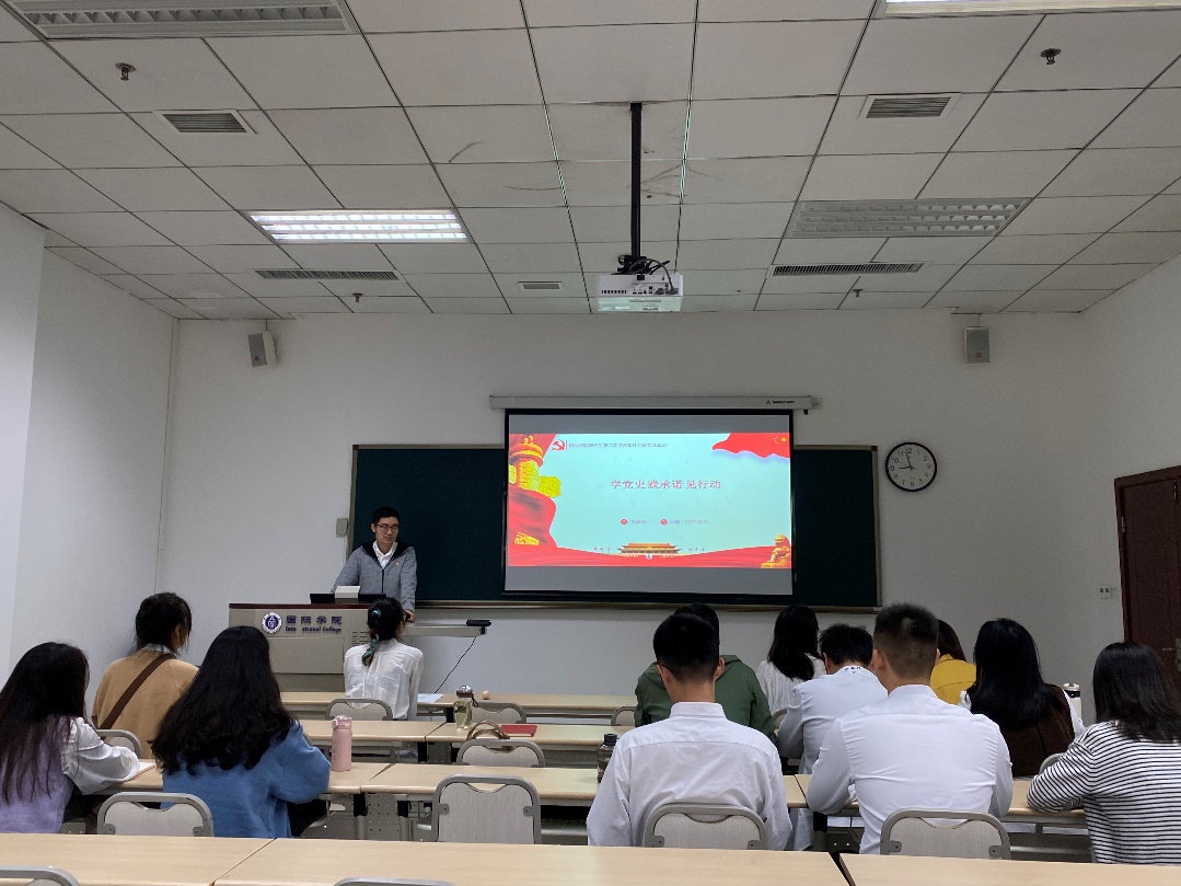 2021年10月15日上午9:00,公司党总支研究生第二支部在紫云楼312室开展以“学党史 践承诺 见行动”为主题的党日活动。