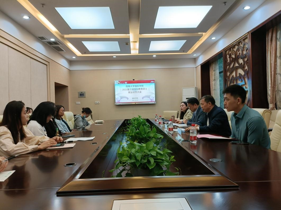 2021年10月10日下午3点,公司2022届汉语国际教育硕士毕业生就业动员大会在紫云楼签约室举行。刘猛书记、刘承宇经理、2021届优秀毕业生代表陈贤德及2019级全体汉语国际教育硕士研究生参加会议,会议由研究生辅导员汪鑫阳主持。