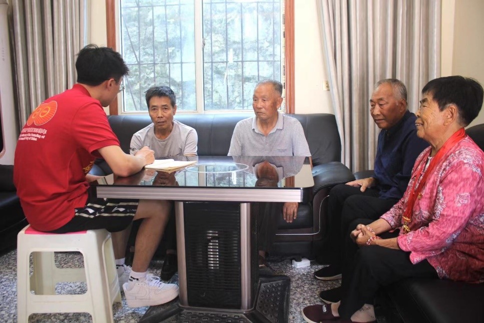 7月144日下午一点半,“红色筑梦”实践队在杨书记的介绍下,与该村四位脱贫攻坚先进老党员开展了一场有声有色的座谈会。座谈会上,杨书记给我们介绍了花茂村自2012年新农村建设以来所取得的成就,绿动九丰农业合作社解决了25名贫困户的就业问题,每人每年增收三万多元的收入。