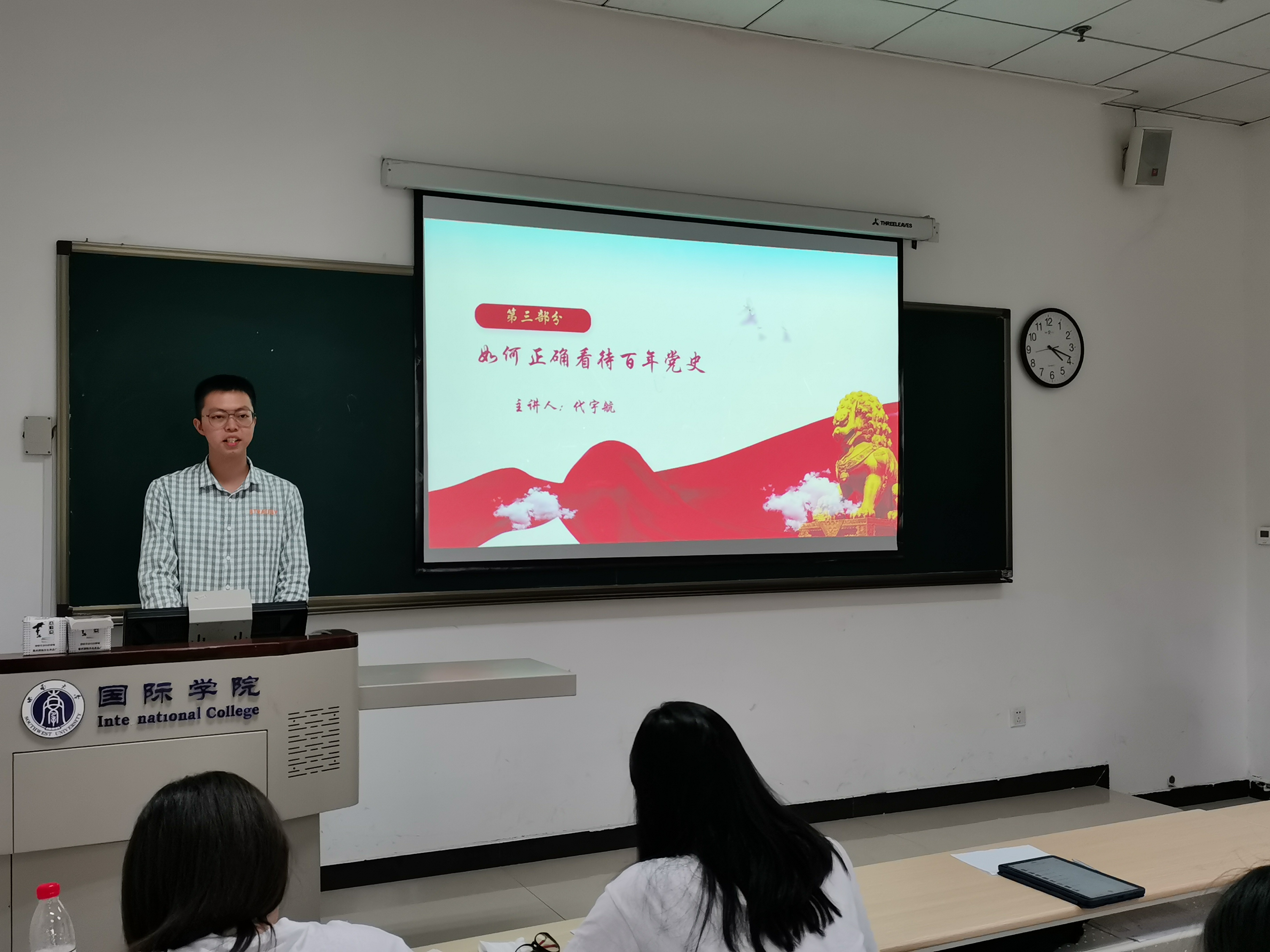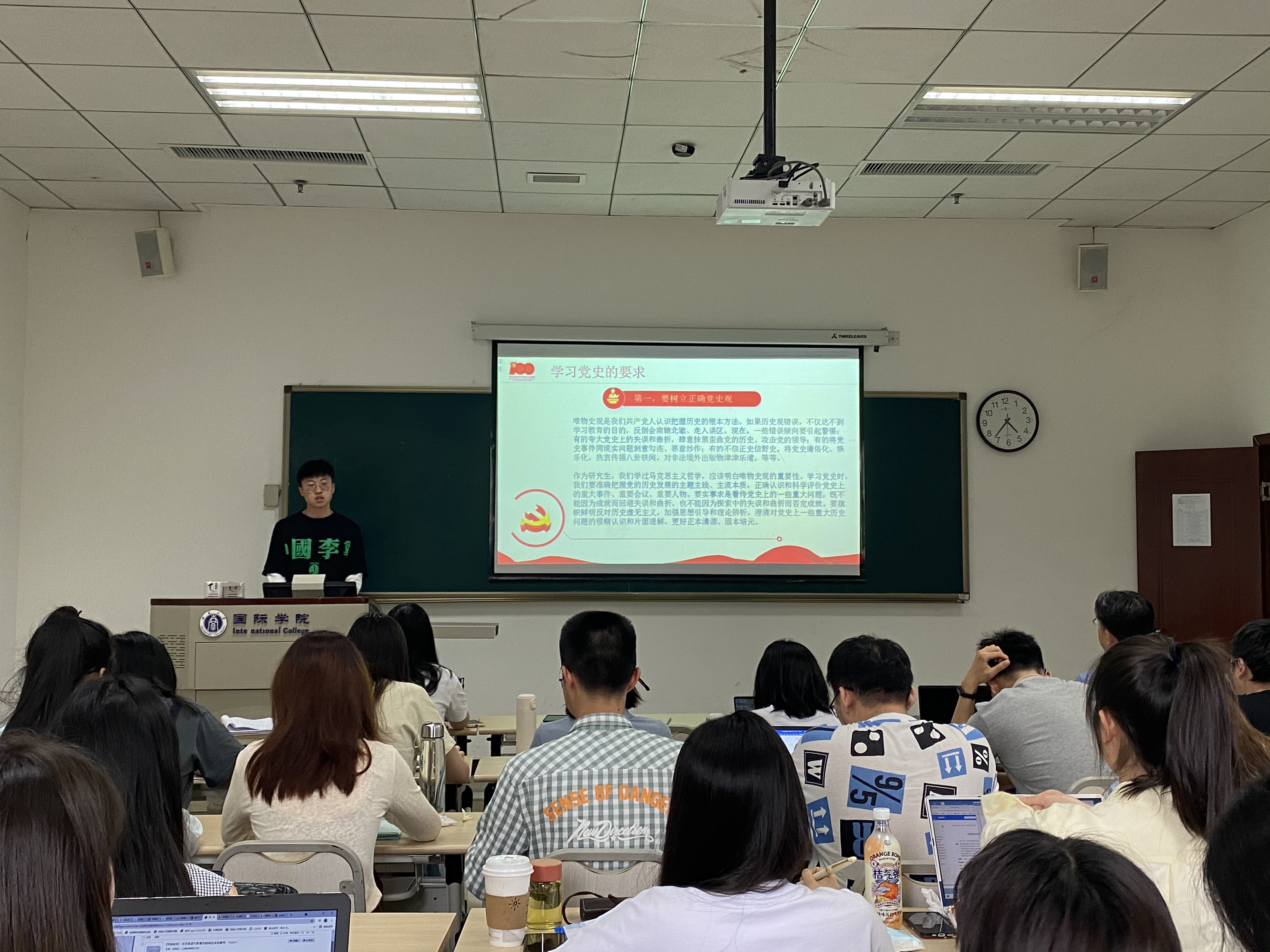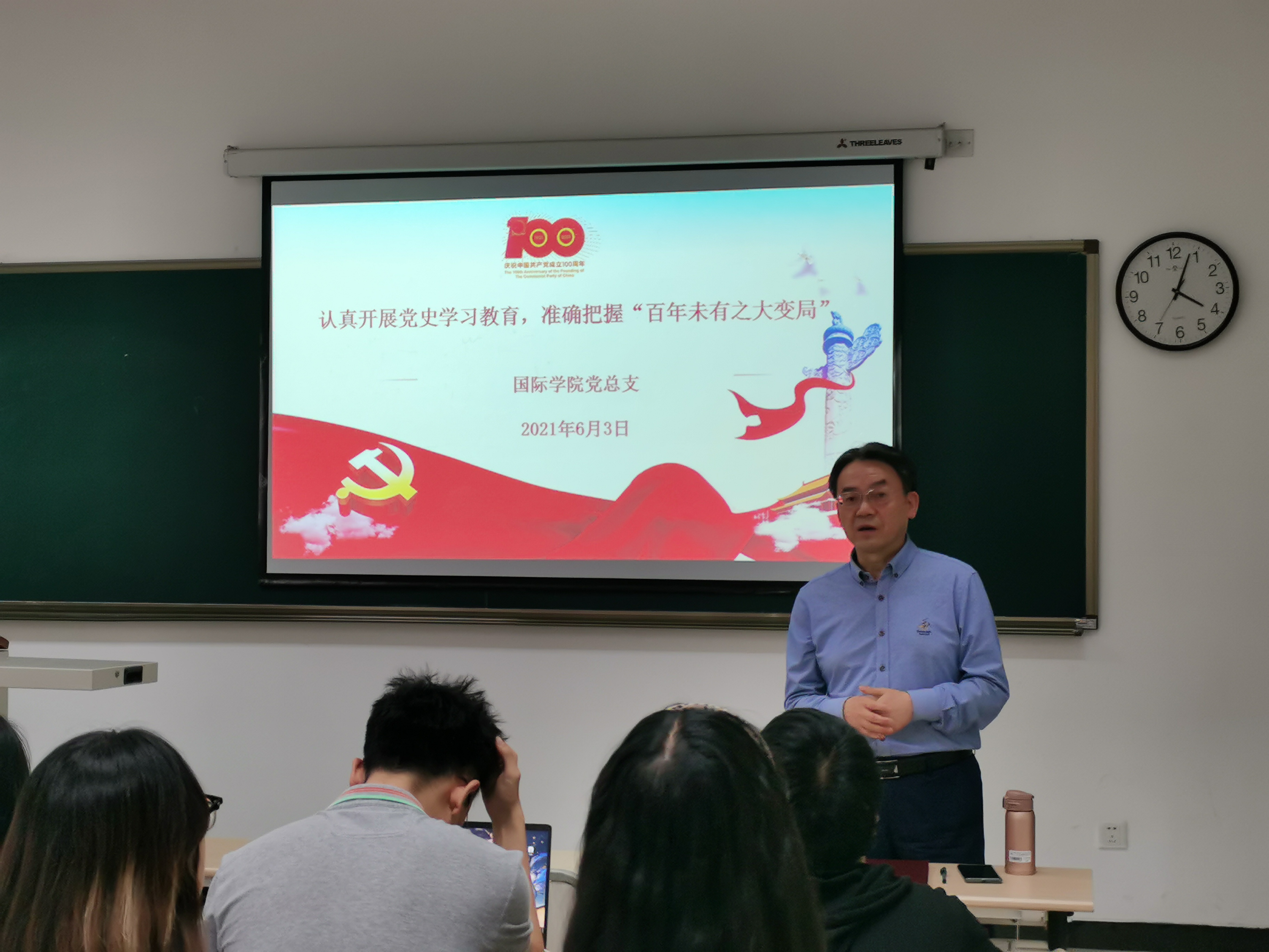 2021年6月3日下午四点,公司研究生第三党支部的6名党员以主讲人的方式开展党史宣讲,主题是:认真开展党史学习教育,准确把握‘百年未有之大变局’”。党总支书记刘猛主持宣讲会,2020级汉语国际教育硕士班的全体同学参加活动。