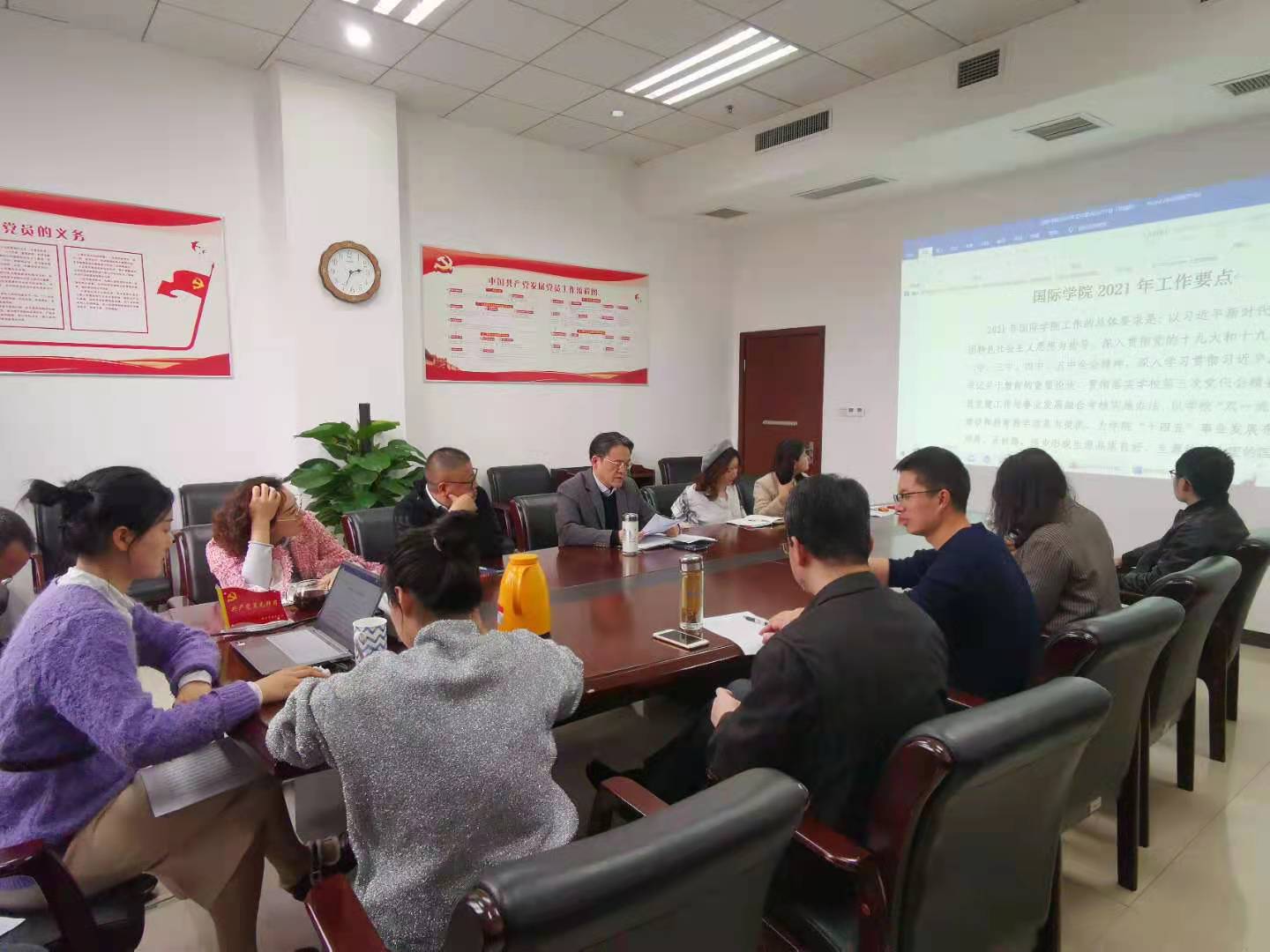 刘承宇经理结合sunbet申搏的定位和十四五任务,传达《sunbet申搏2021年工作要点》,分析加强党对公司工作的全面领导,贯彻落实公司党建工作与事业发展融合考核办法,为来华留学事业的改革发展提供坚强的政治保障和深化来华留学体制机制建设,推进“留学西大”品牌内涵建设,提升汉语国际教育人才培养质量两大工作重心,并着重在教学、科研、学科专业建设、教师队伍建设几方面提出了新的要求。
