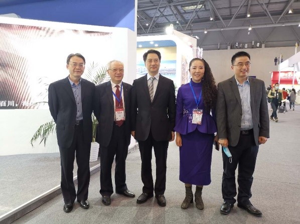重庆市人民政府副市长郑向东(中)、重庆市教育国际交流协会会长胡斌(右二)参观公司展台