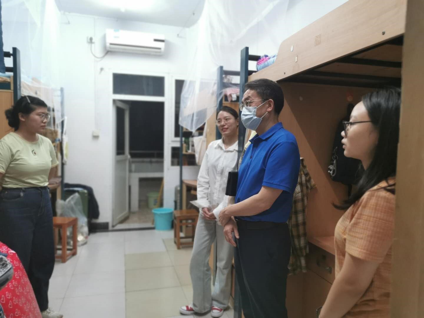 9月20日晚,为深入了解公司新生正式入学后的生活情况,刘猛书记、辅导员景柯沥在所有新生完成报到注册之后,就前往橘园三舍和橘园十一舍看望所有新同学们。