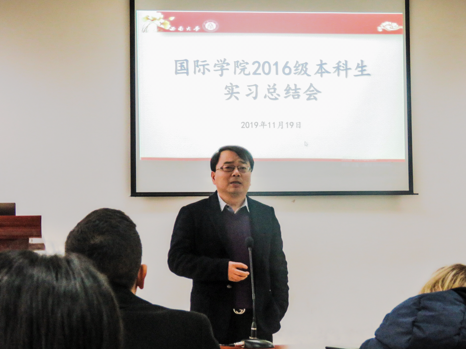 会上,张家政副经理首先祝贺2016级同学圆满完成实习任务归来。他指出,实习既是检验同学们过去三年汉语学习成果的舞台,也是让同学们学以致用的良机;相信大家通过实习,锻炼了自己、提升了自己,同时也发现了不足。实习总结会是大家分享实习经验、检视实习问题、提出实习困惑、解决实习问题的良好平台。希望同学们借此总结会,好好总结反思,从而更好更快地提升自己,同时希望大家在学习、生活中要不断有意识地培养、锻炼自己的总结、反思的能力,做善学、善思之人。最后,张家政副经理祝愿同学们今后能成长为优秀的中国语言和文化的传播者、中国与世界各国友谊的使者。
