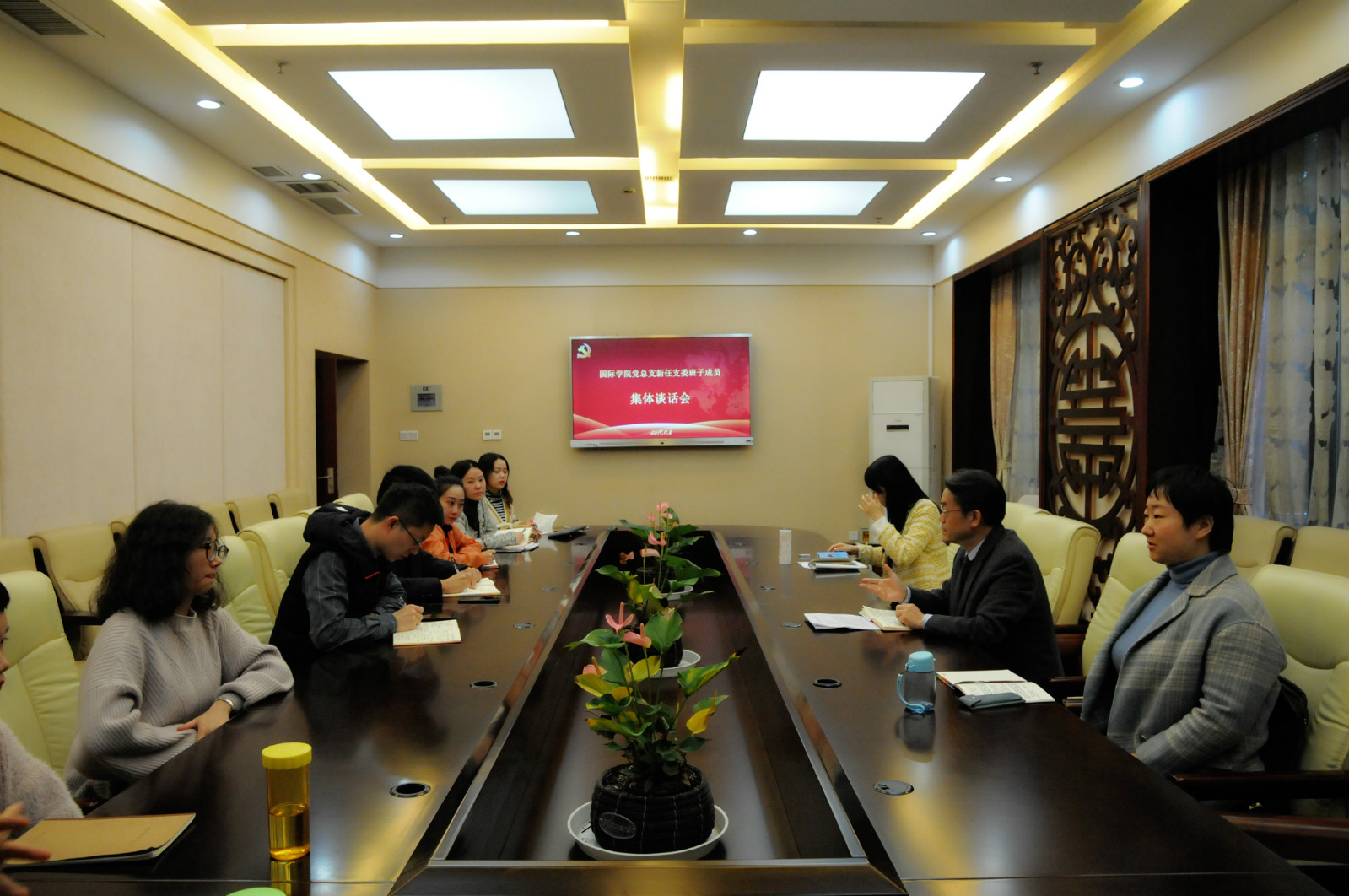 2019年11月8日下午4:30,公司党总支召开新任支委班子成员集体谈话会。党总支书记刘猛,总支委员、党务秘书以及教工一、二支部,研究生2019级支部的新任支委成员参加谈话会。