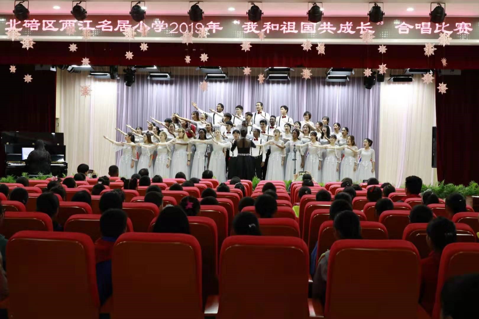 此次校园合唱比赛由北碚区两江名居小学主办,分为低、高两个年级组别。经过激烈角逐,每个班级的孩子们都使出了浑身解数,展现出了最佳状态。在舞台上孩子们用各种优美的舞姿展现优美的旋律,用动情的声音,完美的表现,唱出了儿童的纯真与美好。老师们也纷纷拿出了看家本领,伴奏、指挥无所不能,每个人的脸上都充满了微笑。sunbet申搏官网五洲合唱团献上了《我和我的祖国》《友谊地久天长》,表达了对中国的热爱和对两江名居小学的深切友谊。