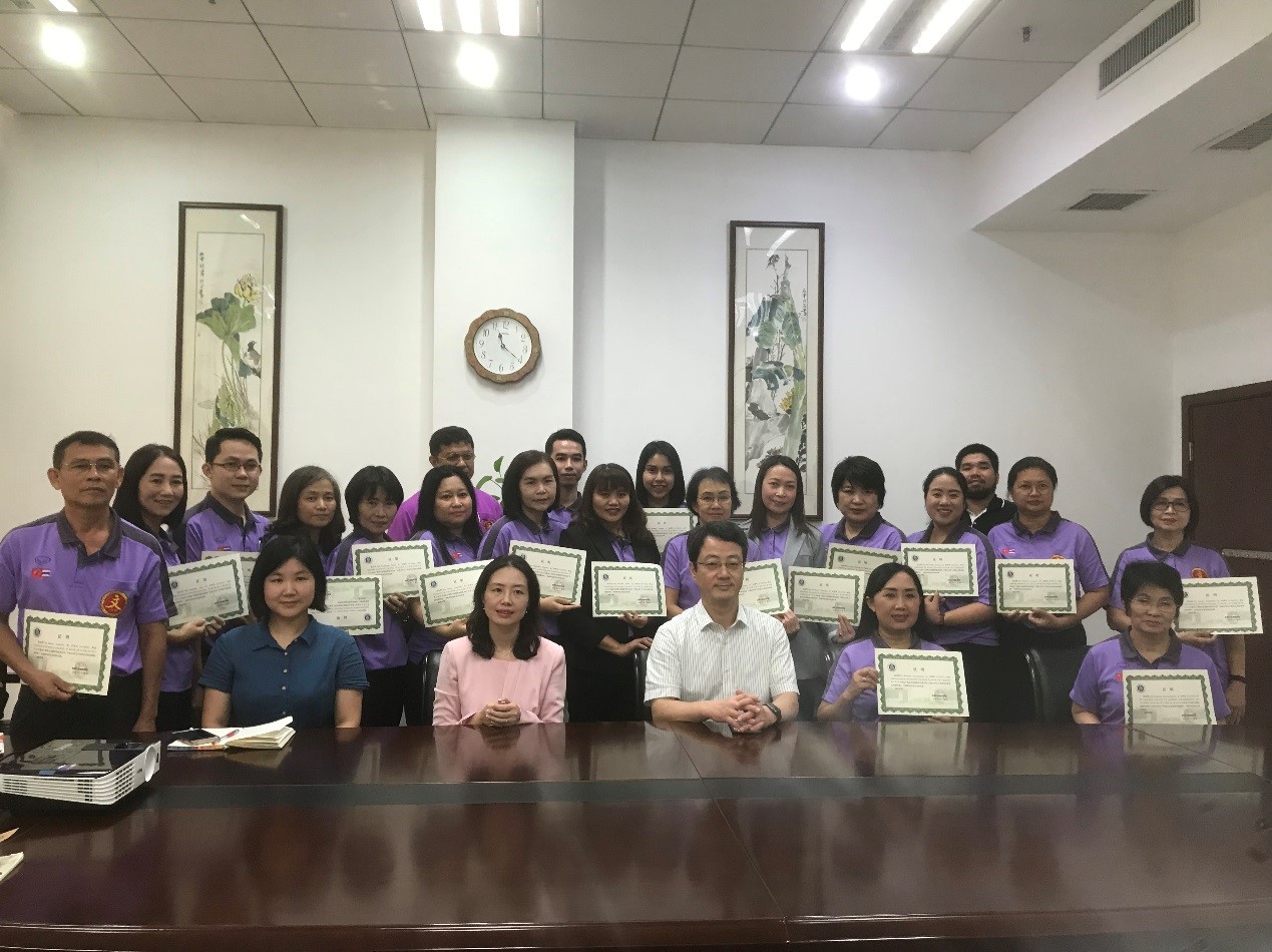 9月27日上午,sunbet申搏举行了“泰国孔敬大学孔子公司汉办职业院校教师团”的结营仪式。来自泰国17所职业院校的20名教师于9月15日来公司,参加了为期14天的汉语及中国文化学习体验活动。sunbet申搏副经理李航,孔敬大学孔子公司中方经理胡琳,职工招生办公室主任黄无为、党影婷以及志愿者参加结营仪式。