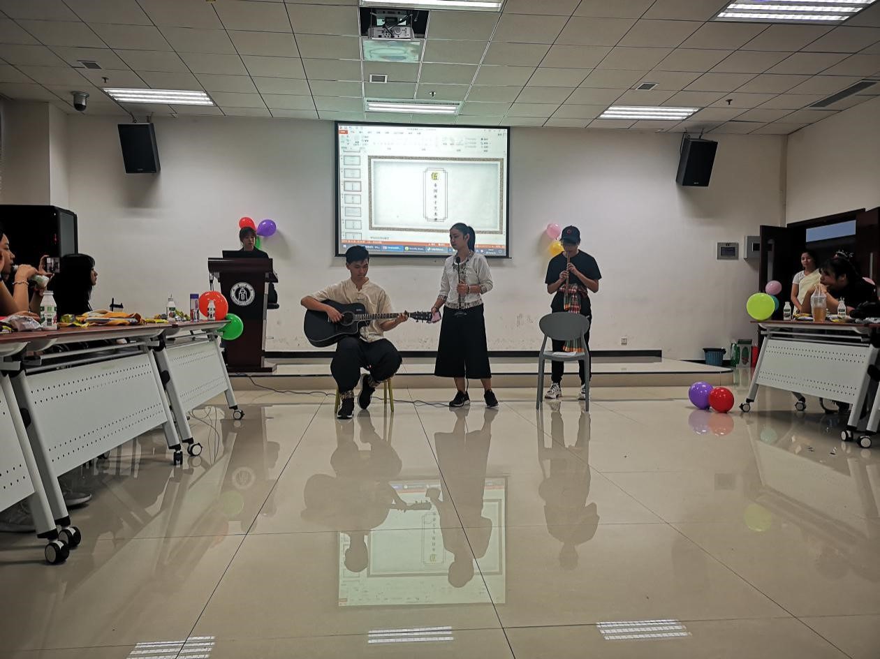 活动期间,主持人用两个极具趣味性的游戏活跃了气氛,拉近了四个班级的同学之间的距离。游戏结束后,全场人员合唱《友谊地久天长》并合影留念,就这样,中秋活动在欢快的笑声中落下了帷幕。