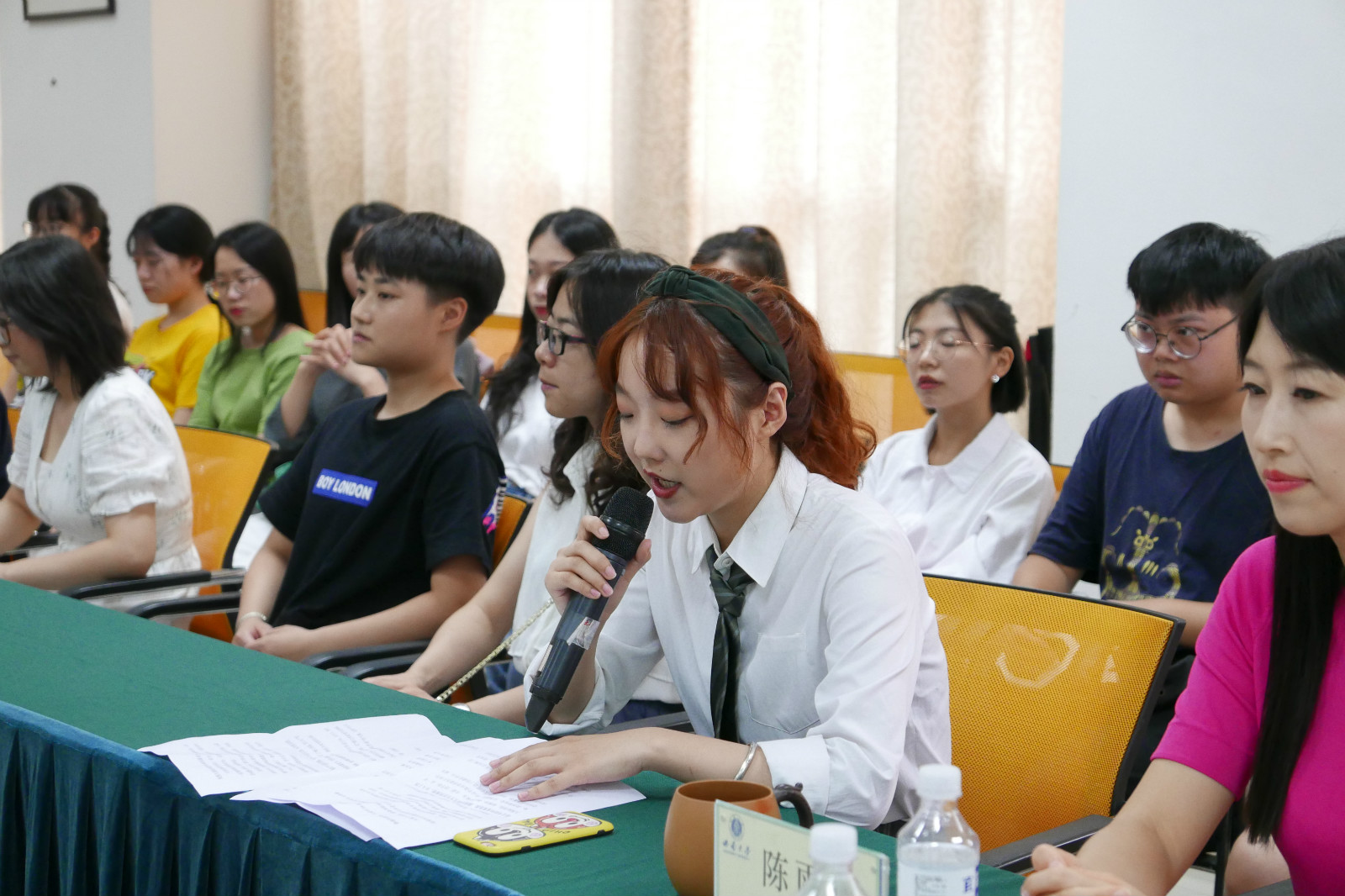 2018级汉语国际教育硕士马林霜作为老生代表发言。她向大家介绍了汉语国际教育专业的学习和实习情况,阐述了研究生生活的特点和汉语国际教育的专业使命,并表示会帮助各位学弟学妹尽快融入新生活。