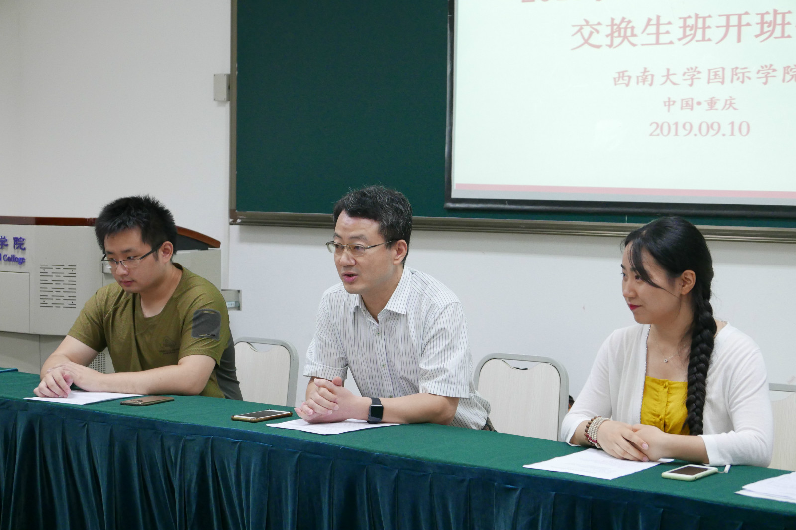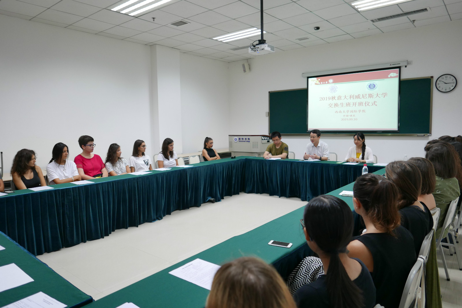 9月10日上午10点,2019-2020-1学期意大利威尼斯大学交换生班开班仪式在sunbet申搏紫云楼312教室举行。sunbet申搏李航副经理,招生办公室黄无为老师,意大利威尼斯大学交换生班26位同学参加了本次开班仪式。仪式由班主任刘妍芩主持。