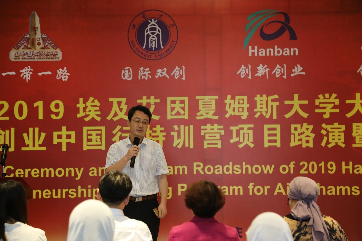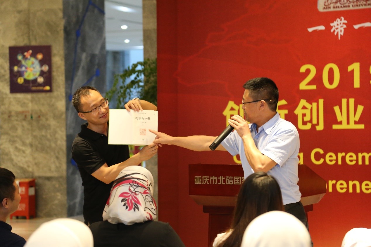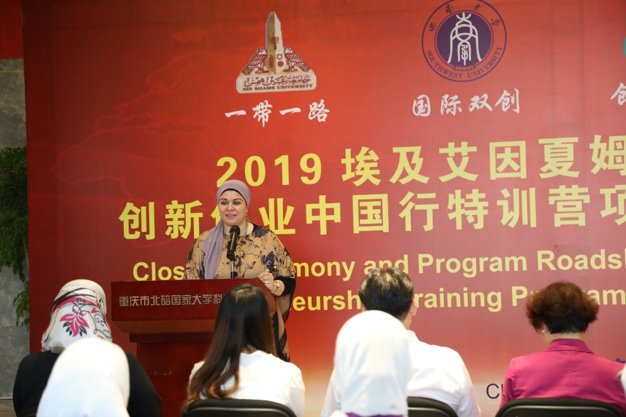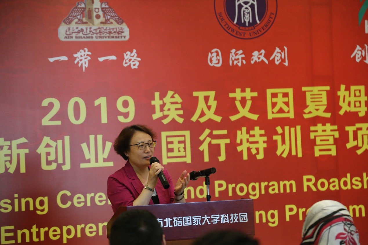 7月4日下午,sunbet申搏官网和北碚国家大学科技园联合举办“2019埃及艾因夏姆斯大学老员工创新创业中国行特训营”项目路演暨闭营仪式。经理王静,党总支书记刘猛,副经理李航,大科园党委书记、管委办主任刘双全,重庆市北碚大学科技园发展有限公司总经理徐春庆,领队教师、埃及艾因夏姆斯大学国际处处长Dr.Esrra,特训营导师团队,班主任王鹊和全体营员参加,埃及艾因夏姆斯大学中阿翻译班学员列席。