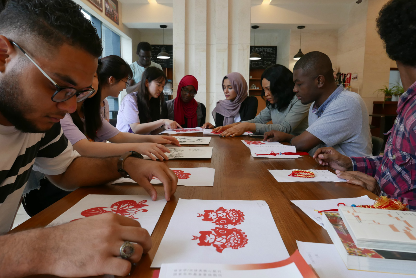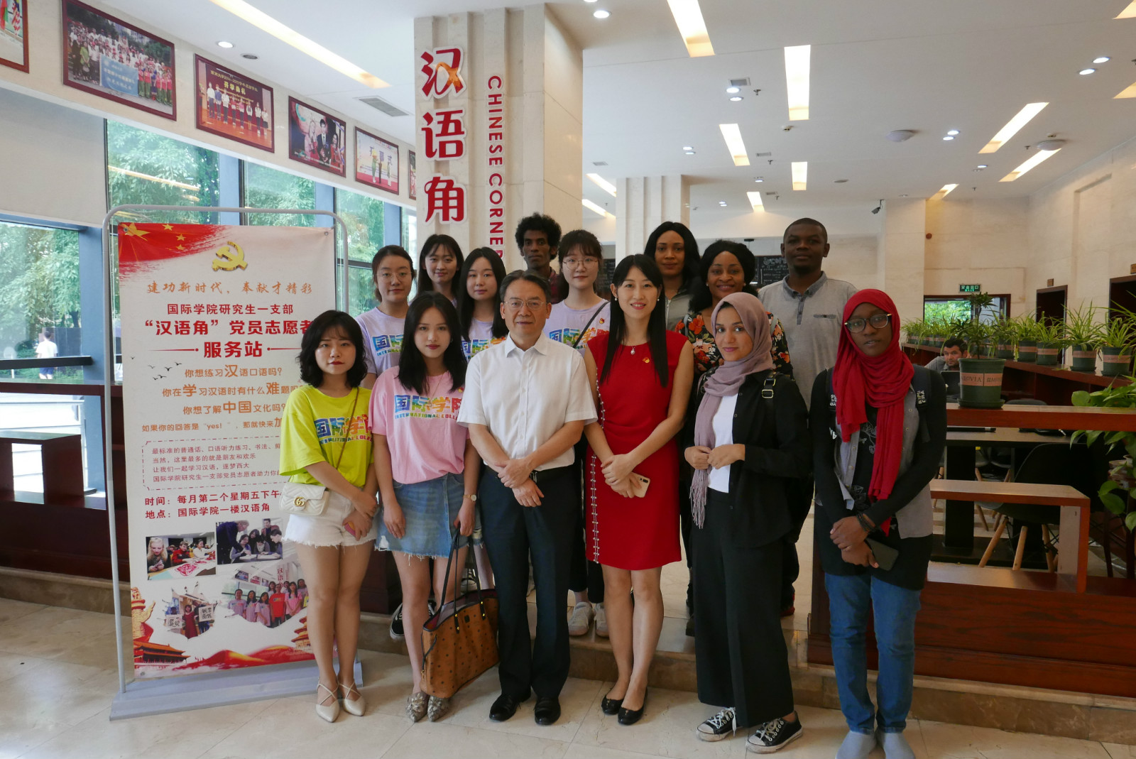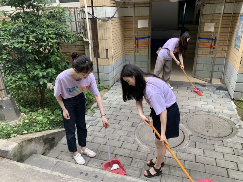 会后,全体党员一同前往紫云楼一楼汉语角参加了 “建功新时代•奉献才精彩—公司研究生一支部汉语角党员志愿服务站”启动仪式,并现场教授职工们汉语、剪纸和中国结。活动结束后,毕业生党员们前往杏园宿舍,进行了园区清扫活动。