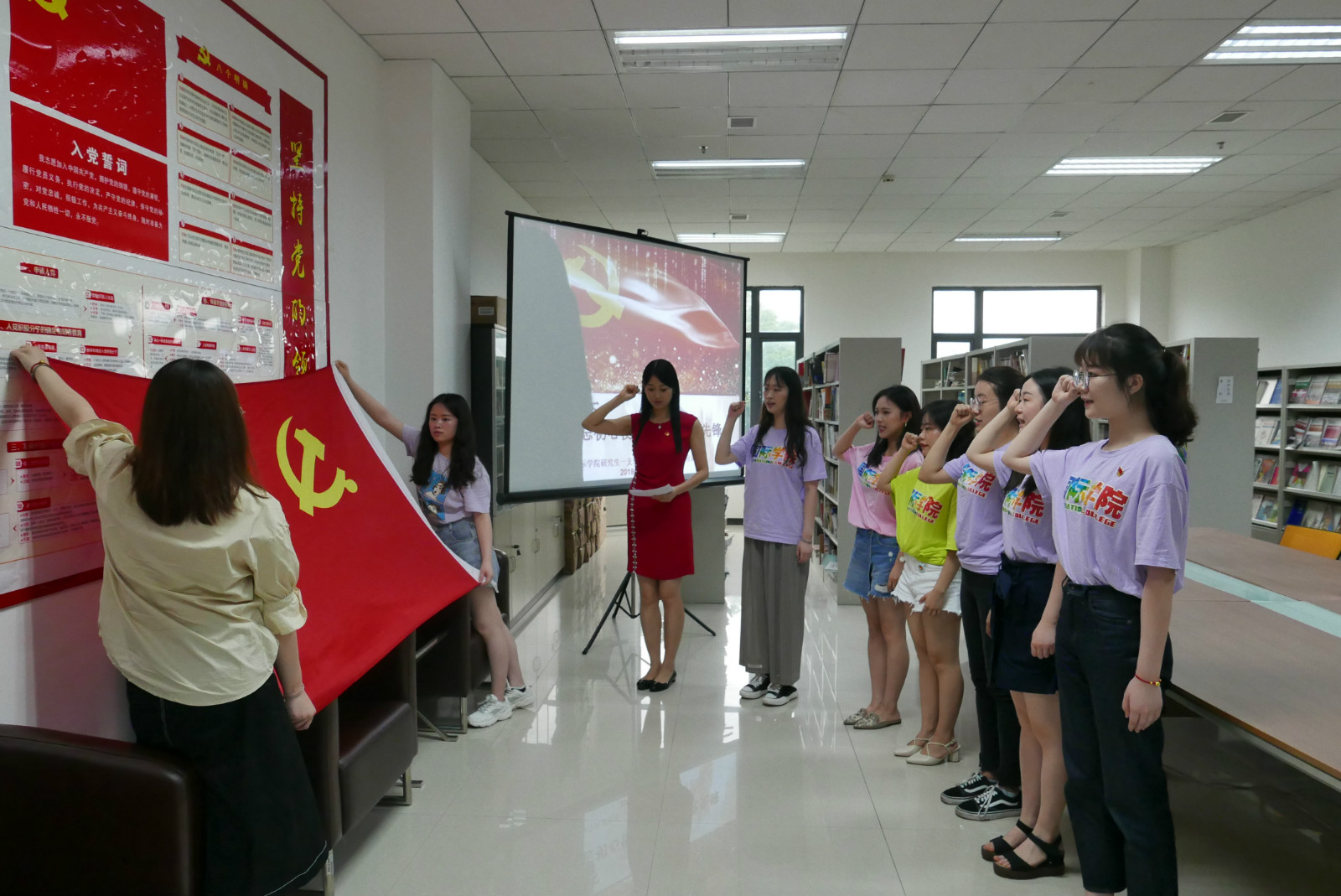 本次毕业生党员主题教育活动包括:重温入党誓词、党旗下的毕业承诺、给母院建言献策、“汉语角”党员志愿服务站启动仪式及宿舍园区清扫活动。
