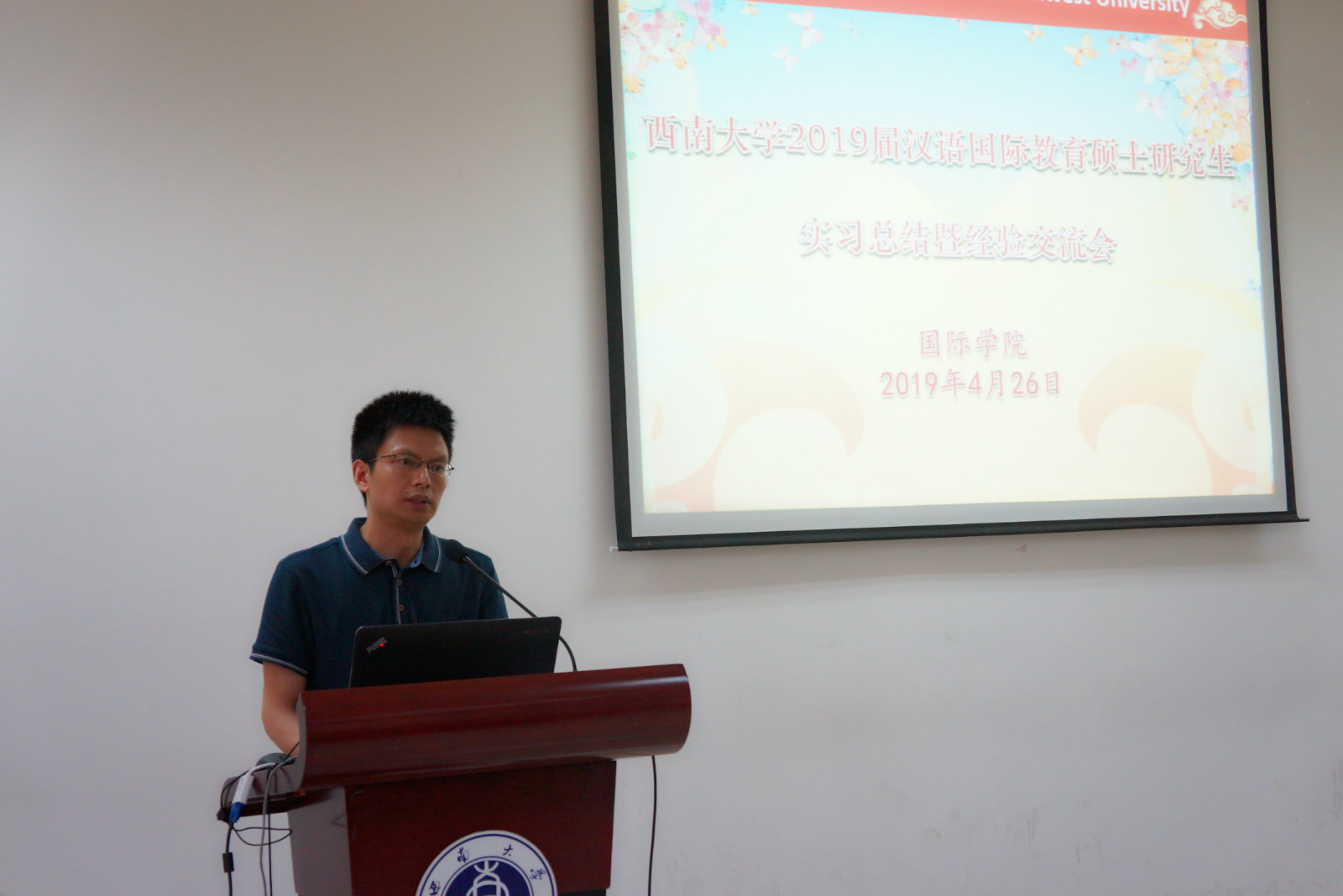 4月26日下午三点,sunbet申搏2019届汉语国际教育硕士研究生实习总结暨经验交流会在紫云楼317会议室举行。研究生院副经理张陈、sunbet申搏经理王静、党总支书记刘猛、经理助理耿军及2017级和2018级汉语国际教育硕士专业的中外员工近100人参加会议。会议由学工办主任陈雨曦主持。