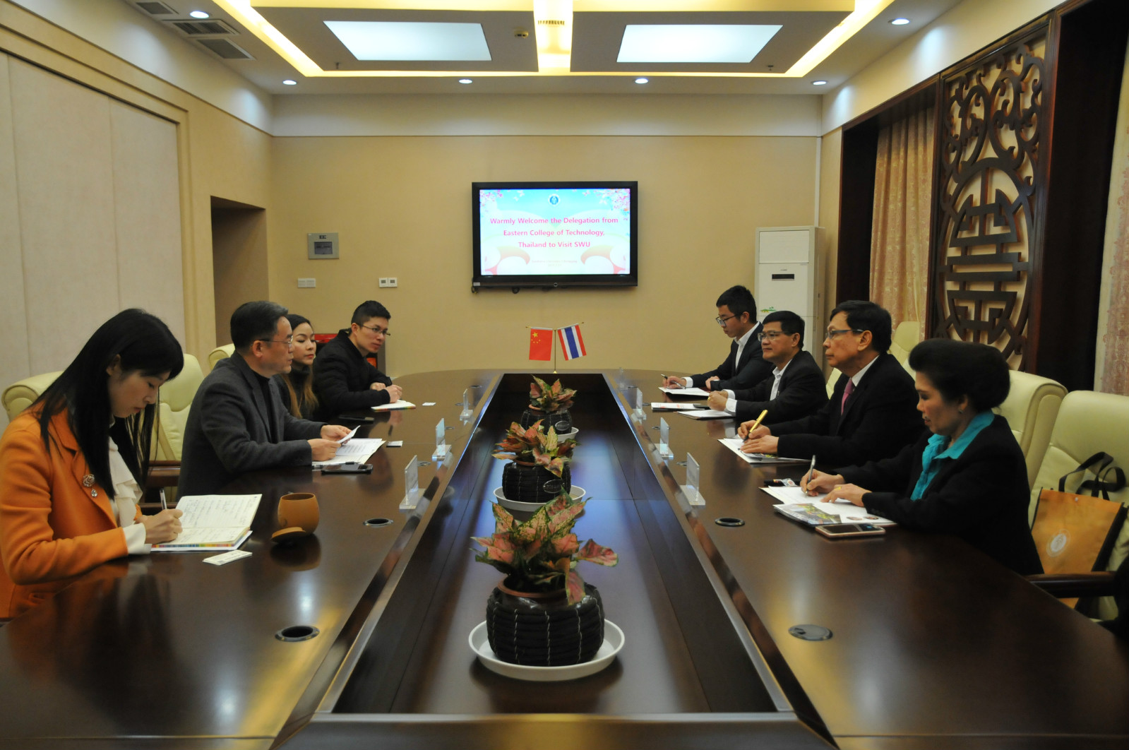刘猛书记首先代表公司热烈欢迎代表团一行来访,并从发展历史、优势学科、来华留学教育发展等方面介绍了公司和公司的基本情况,并重点介绍了公司与泰国高校的联合培养本科项目和学分项目。