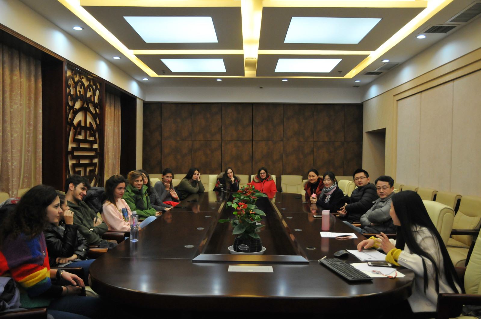 1月10日上午10:30,2018年意大利威尼斯大学项目班结业典礼在紫云楼一楼会议室圆满举行。sunbet申搏李航副经理,sunbet申搏招生办公室黄无为老师,任课教师王菁、张鹭遥、钟万平,以及威尼斯大学的员工参加了本次结业典礼。结业典礼由班主任刘妍芩主持。