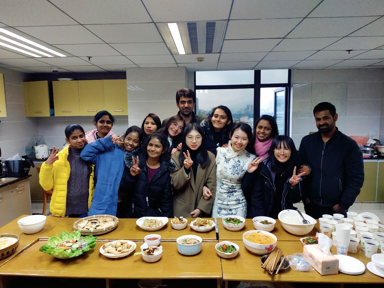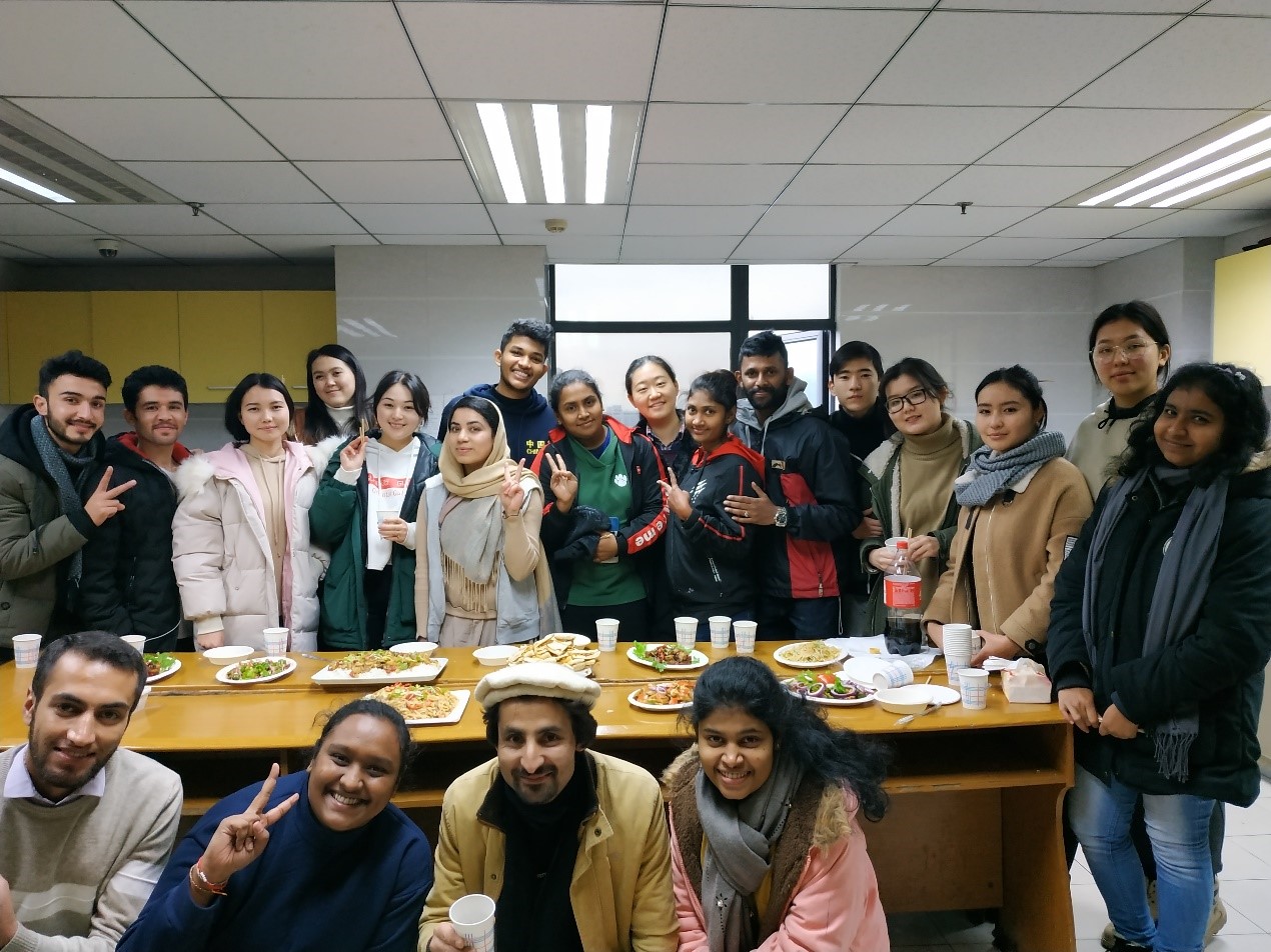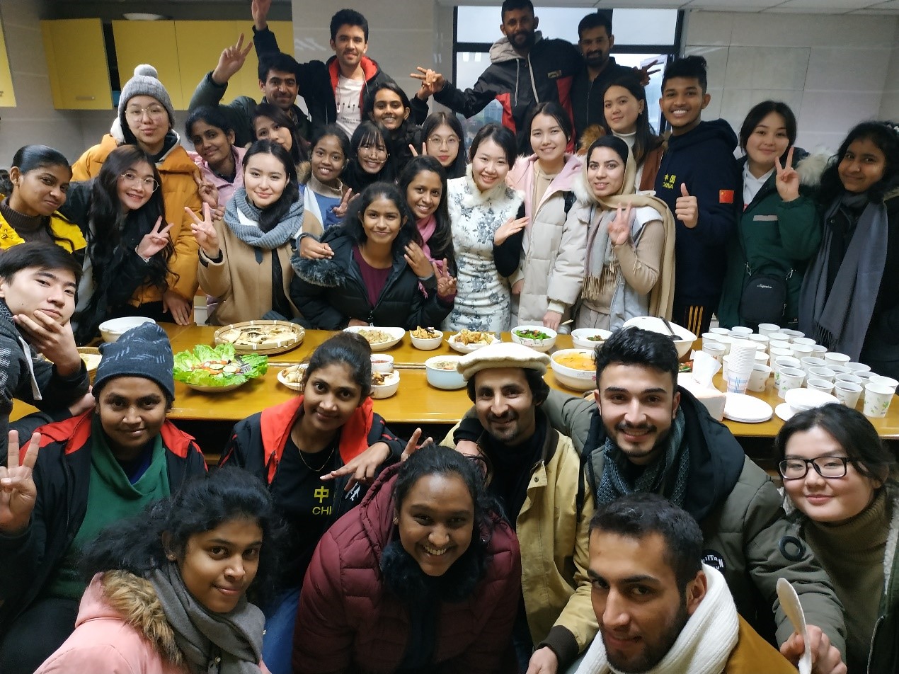 为践行当代中国专题课程之美食专题和欢送即将完成学业回国的2018级CIS一学期员工,12月29日下午,2018级CIS生1班和2班在紫云楼四楼和五楼厨房开展了以“赛出巧手菜 难舍西大情”为主题的班级活动,来自斯里兰卡、泰国、哈萨克斯坦、巴基斯坦、吉尔吉斯斯坦、玻利维亚、秘鲁的7个国家30余名职工参加了此次做菜比赛的班级活动。