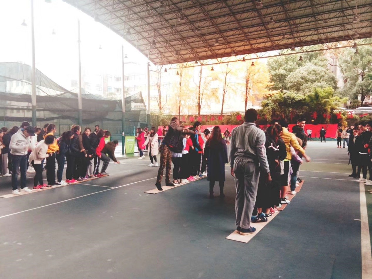 “放竹竿”让大家感受到了人心齐泰山移的成就感。“汉语文化跳绳接力”的游戏里,老师和同学在脑力体力的结合和动静交替中感受了一把最强大脑的挑战。“过河搭桥”双方争分夺秒,互不相让,场面十分激烈,加油声此起彼伏。“一心两用持球迎面接力”充分地考验了队员与队员之间的协作能力,又考验选手个人的协调能力。