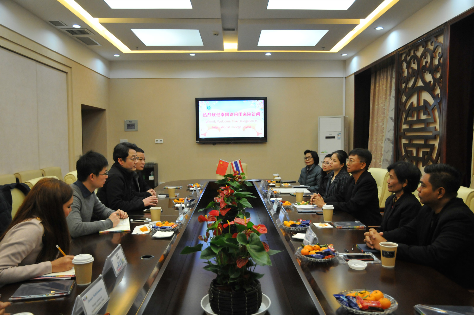 12月2日,来自泰国南部的国光中学、董里华侨公司、树强中学、洛坤中学等组成的泰南董事长代表团来院访问。公司与代表团一行在签约室举行了亲切会谈。座谈会由李航副经理主持。