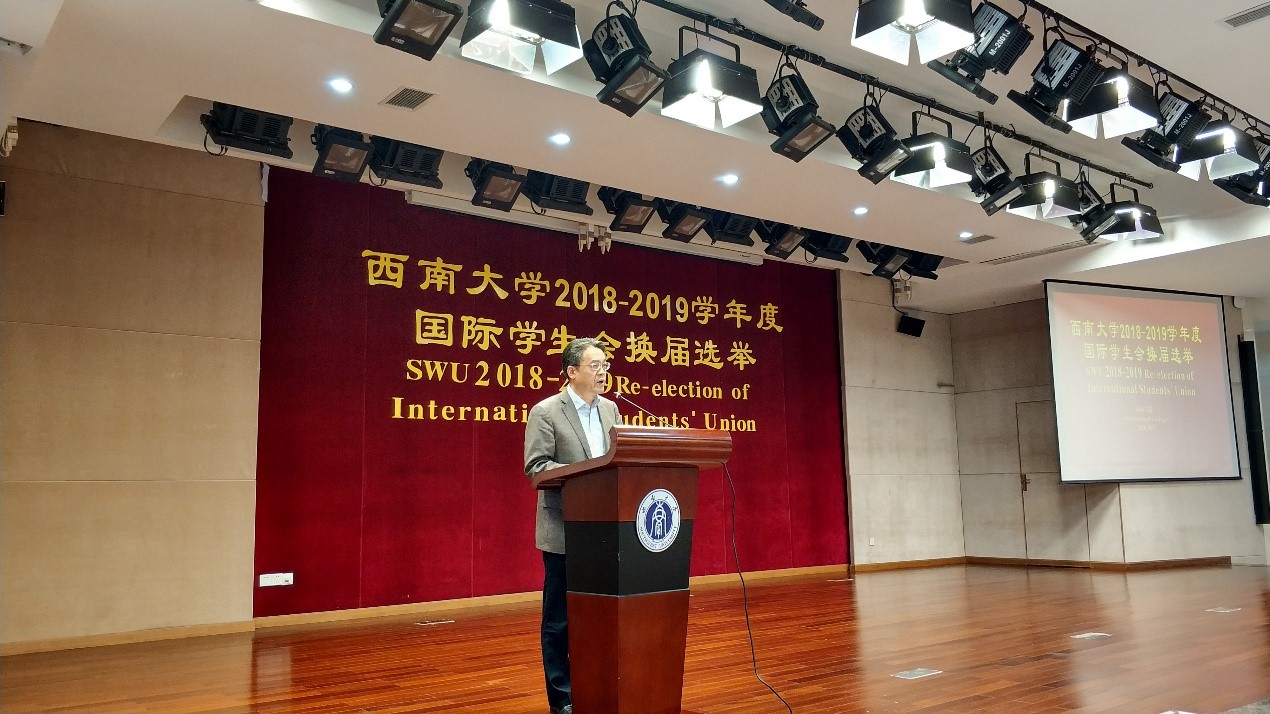 10月9日下午5点,sunbet申搏2018-2019年度国际员工会换届选举大会在sunbet申搏报告厅隆重举行,来自17个国家的30名候选人就新一届国际员工会的主席、副主席和秘书职位展开竞选。公司党总支书记刘猛,员工工作办公室主任陈雨曦以及全校400余名国际员工代表参加选举大会。