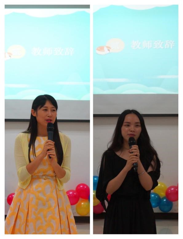 活动在来自中国班的王潇和来自泰国班的杨菲同学的主持中拉开帷幕。陈雨曦老师、吴宗燕老师分别向在场员工致辞,以温情的话语表达了对员工们真情的祝福。