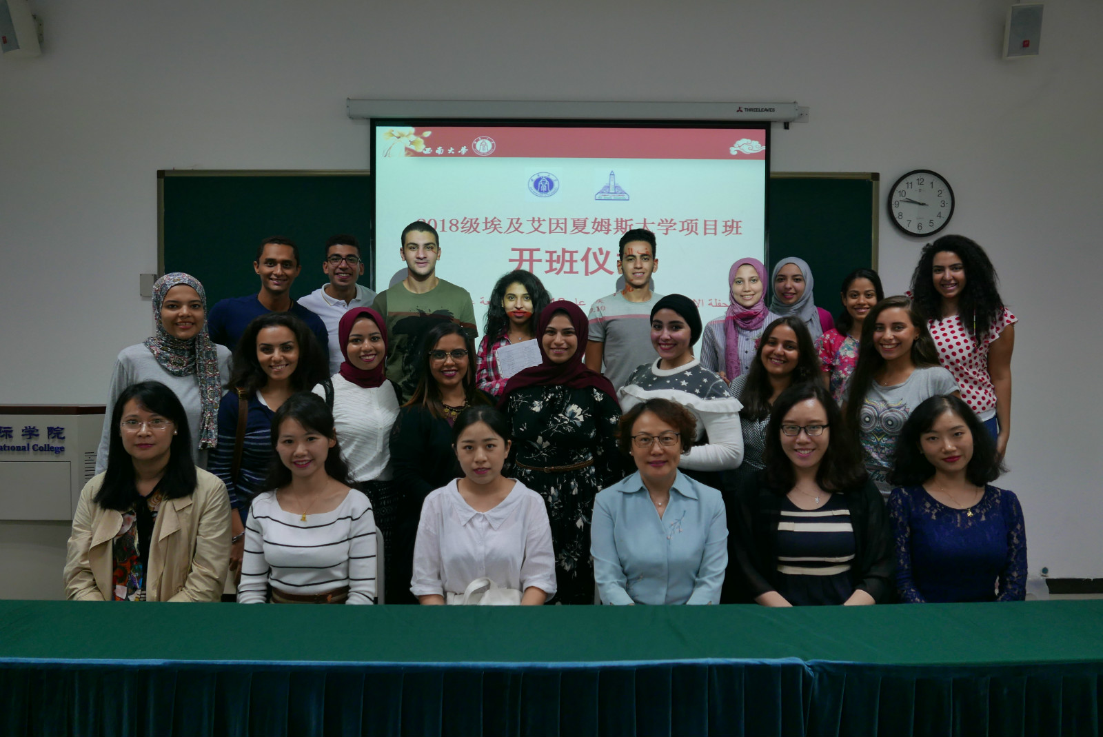 9月10日,埃及艾因夏姆斯大学“2+1+1”本科学分项目班(翻译专业)开班仪式在sunbet申搏举行。sunbet申搏经理王静、项目班任课教师、教学秘书以及项目班全体同学参加开班仪式。