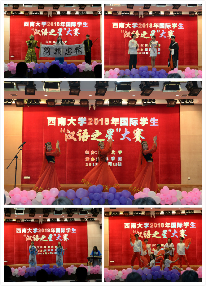 大赛现场,亮点频出,高潮迭起,“笑”果鲜明。前四个环节分设基础必答题与团体抢答题。题型涉及广泛,题目丰富有趣,包括听后说、看图讲故事、读绕口令、写汉字等。选手们流利的汉语、丰富的中国文化知识、机智巧妙的回答、敏捷的反应力博得了现场观众的阵阵掌声。在才艺环节中,各个队更是都拿出了自己的看家本领。书法、古筝、舞蹈、武术等才艺表演将中国文化与中华才艺完美地融合在一起,给现场观众带来了一场精彩绝伦的视听盛宴。万有引力队力压群雄,最终获得团体冠军。