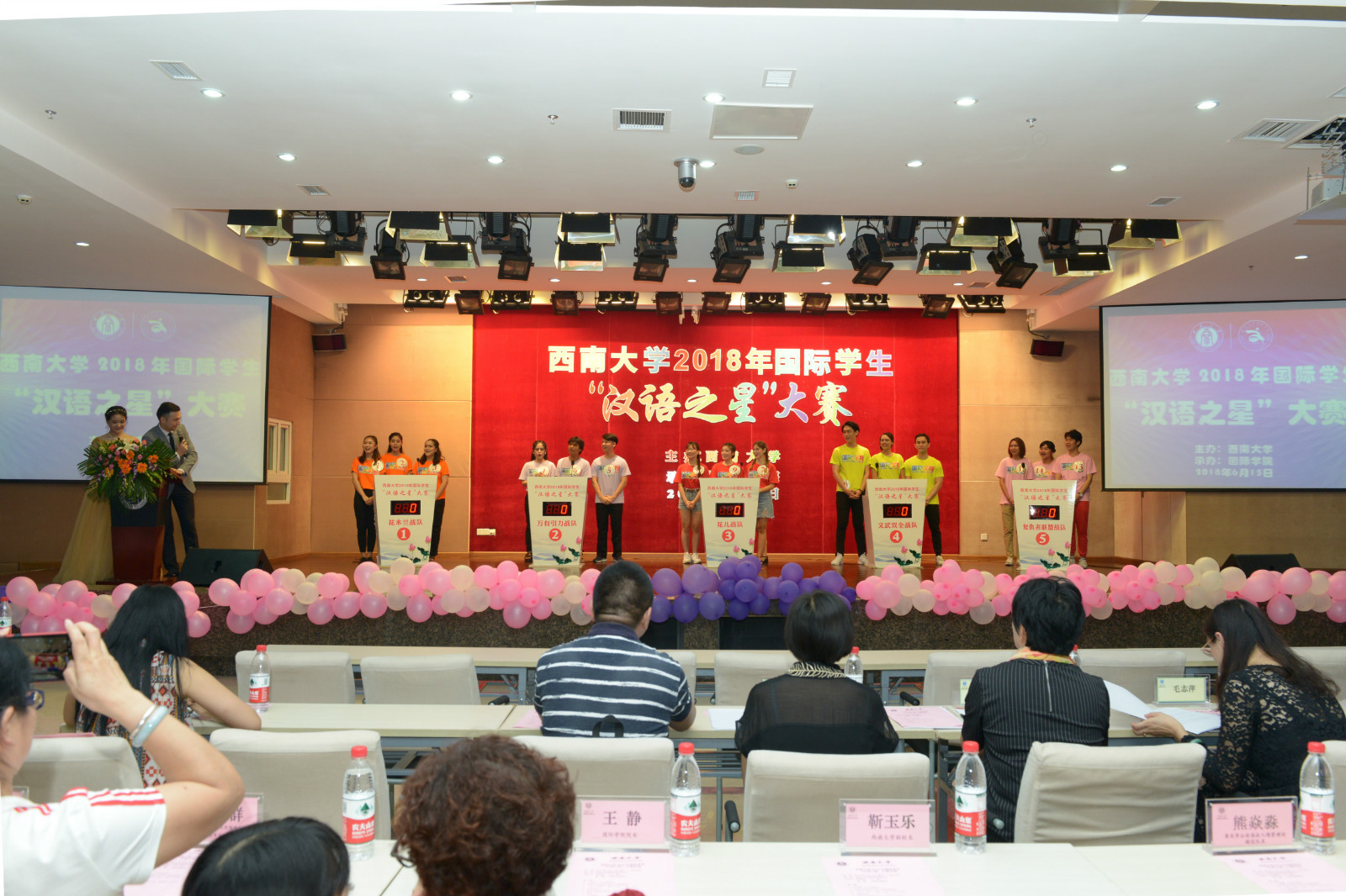6月15日晚,2018年国际员工“汉语之星”大赛在sunbet申搏报告厅举行。重庆市公安局出入境管理局副局长熊焱淼,公司副董事长靳玉乐,重庆骑龙饮食文化有限责任公司、重庆嘉合众腾教育信息咨询服务有限责任公司以及公司有关部门负责人到场观看比赛。