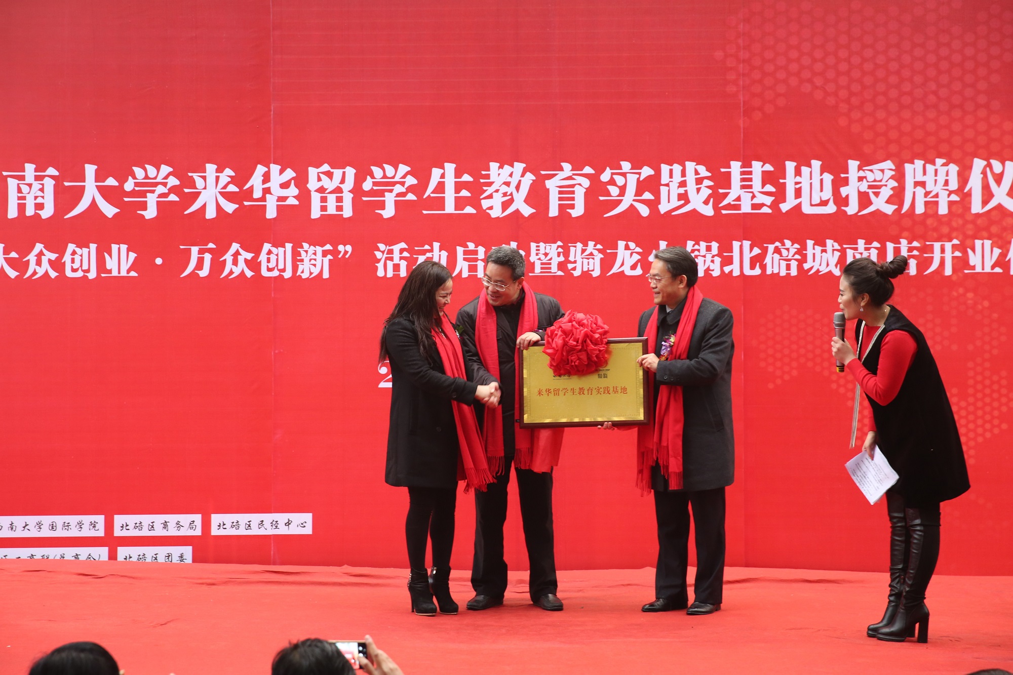 12月29日上午,公司“来华职工教育实践基地”授牌仪式在重庆骑龙饮食文化责任有限公司举行,北碚区人民政府副区长赵祺,公司公司党总支书记刘猛共同为公司董事长任鸿海秀女士授牌。