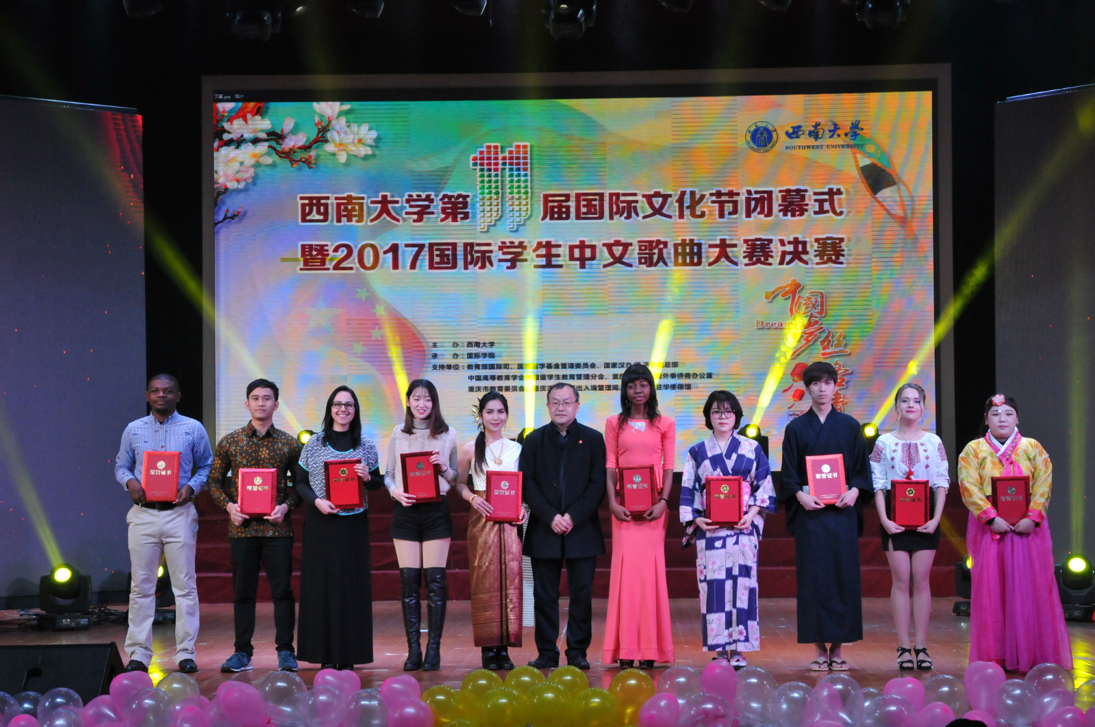 12月13日晚,以“中国梦 丝路情”为主题的sunbet申搏第十一届国际文化节闭幕式暨2017国际员工中文歌曲大赛决赛在光大礼堂举行。重庆市公安局出入境管理总队副支队长徐春兰,公司副董事长丁忠民,教务处、研究生院、sunbet申搏、食品科学公司等相关部门及公司领导应邀出席闭幕式。