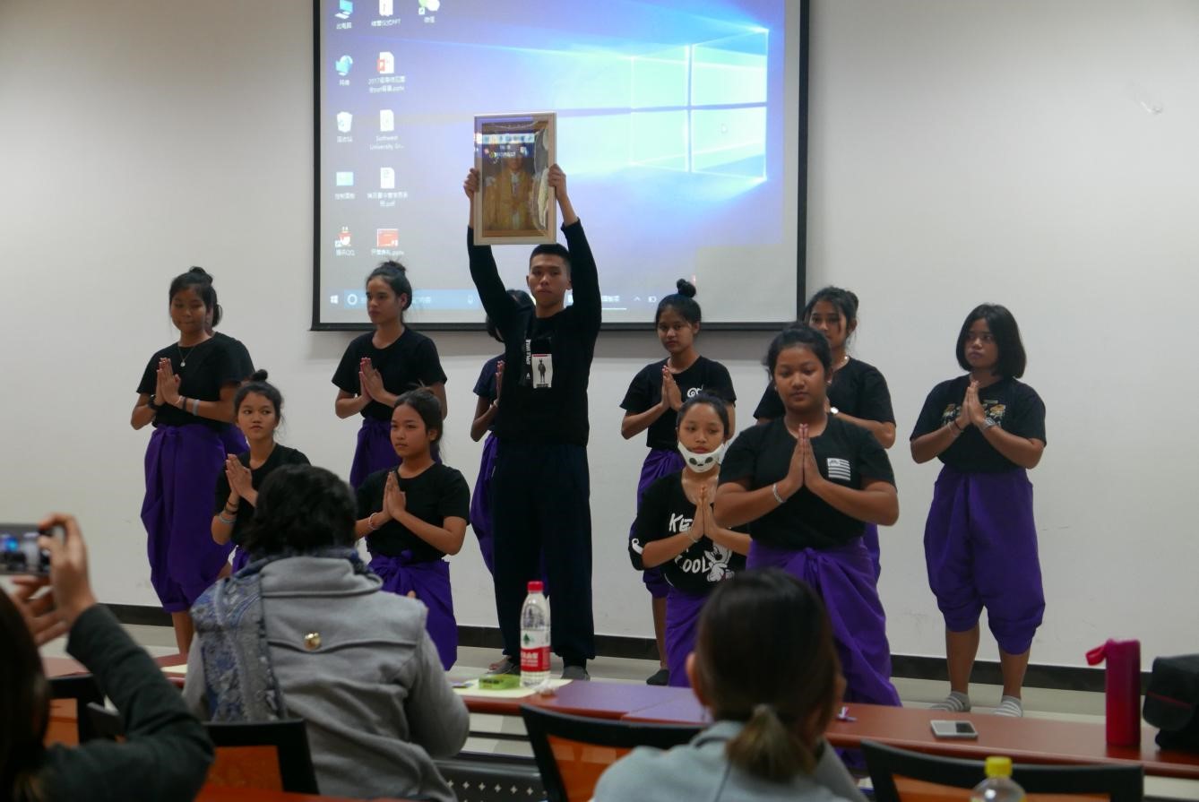 随后,营员们分为12组,以PPT结合现场问答、武术表演等的新颖方式,全面回顾了秋令营所有活动安排、展示了学习成果,并细致而有趣地介绍了重庆生活所体验到的美食及风景等。展示最后,营员通过自编自导自演的歌唱舞蹈表达了对先王的哀悼和怀念。