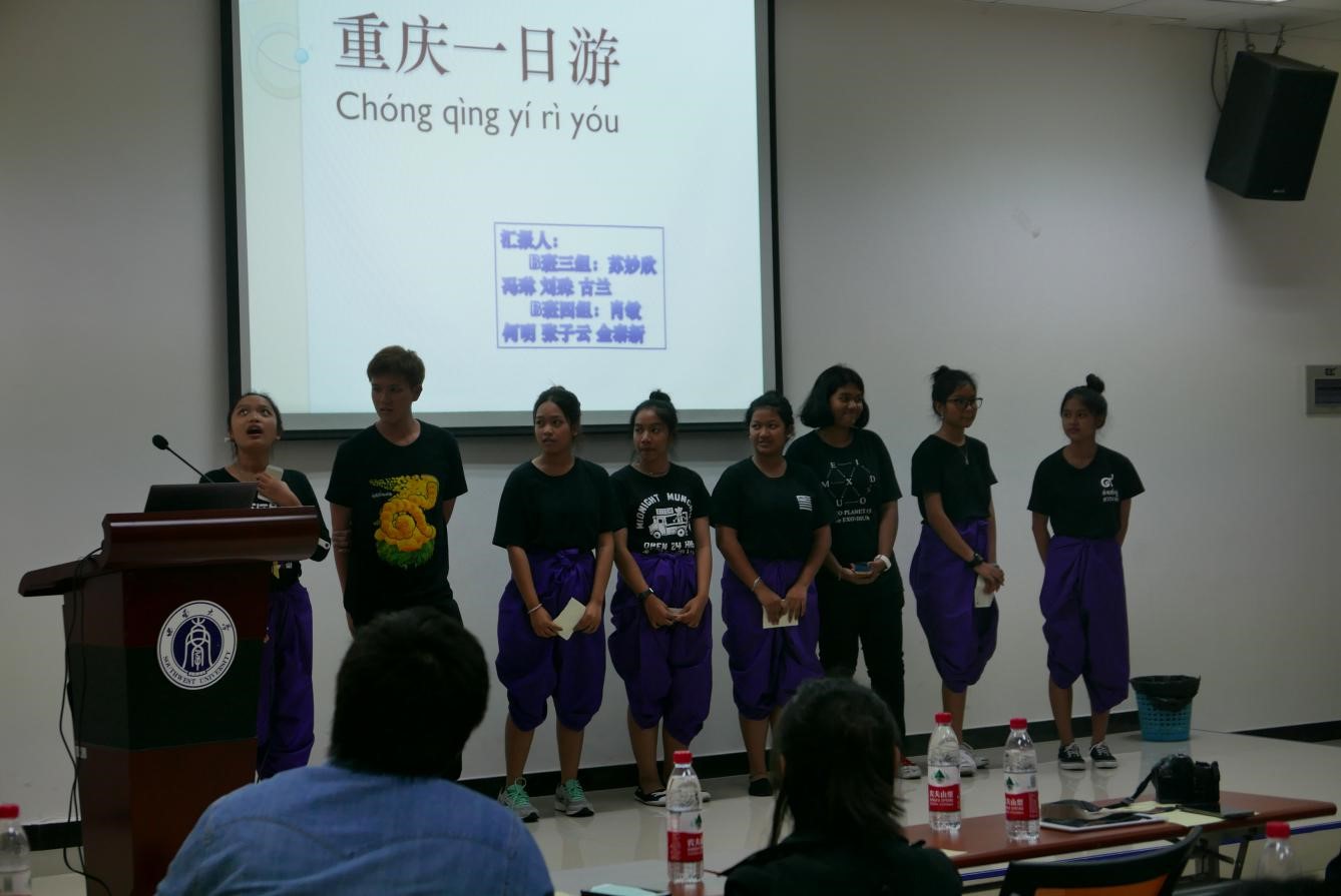 员工代表李仁龙、李雪利随后登台发言,回顾了秋令营的各项活动,自己初到重庆的孤独以及汉语实习教师和泰国志愿者的温暖关怀。简短回顾了短暂而又精彩的两周,同时表达了希望再次回到sunbet申搏深造的愿望。