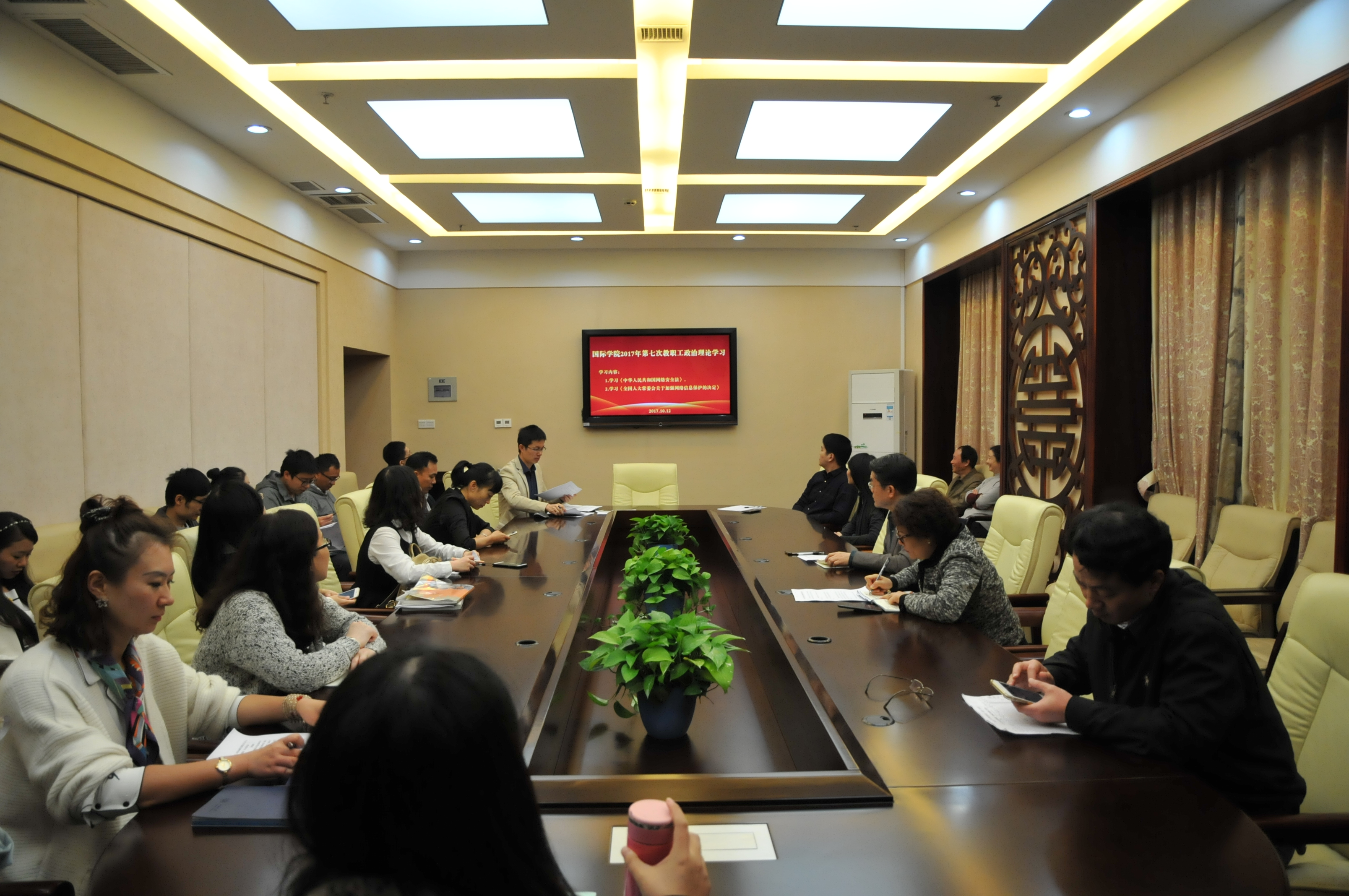 2017年10月12日下午4:30,sunbet申搏全体教职工在紫云楼一楼签约室开展第七次政治理论学习活动。