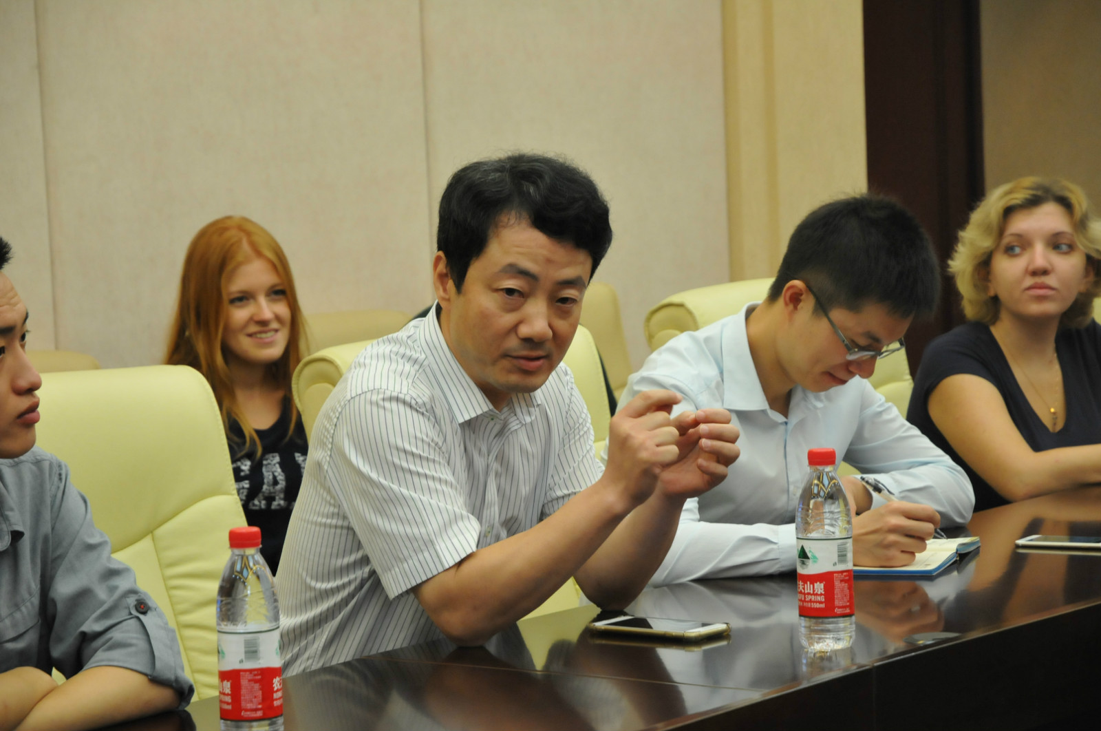 秦洁经理感谢公司的热情接待和周密安排。她说,此类访问在加强两校合作方面作用明显,有利于促进多元交流和多元文化融合。也希望通过座谈的方式,促进中外员工之间的了解。李航副经理向客人赠送了礼品。随后,访问团一行与公司外国语公司俄语专业员工代表和公司国际员工代表就中国文化、老员工活等话题进行了座谈交流。