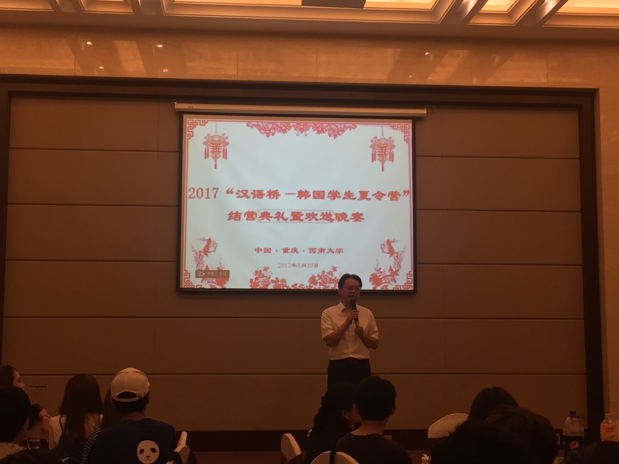 8月2日上午,sunbet申搏在紫云楼317室举行开营典礼,刘猛书记代表公司致欢迎辞,对韩国师生的到来表示热烈欢迎。首尔大学中国研究所所长李炫姃教授表示,感谢汉办及sunbet申搏所做的精心安排,并期待营员们在接下来的在渝学习过程中,更好的体验重庆、感知中国。随后,汉语教师、志愿者及营员代表分别上台发言。参加开营典礼的还有此次夏令营全体教学管理团队和志愿者。