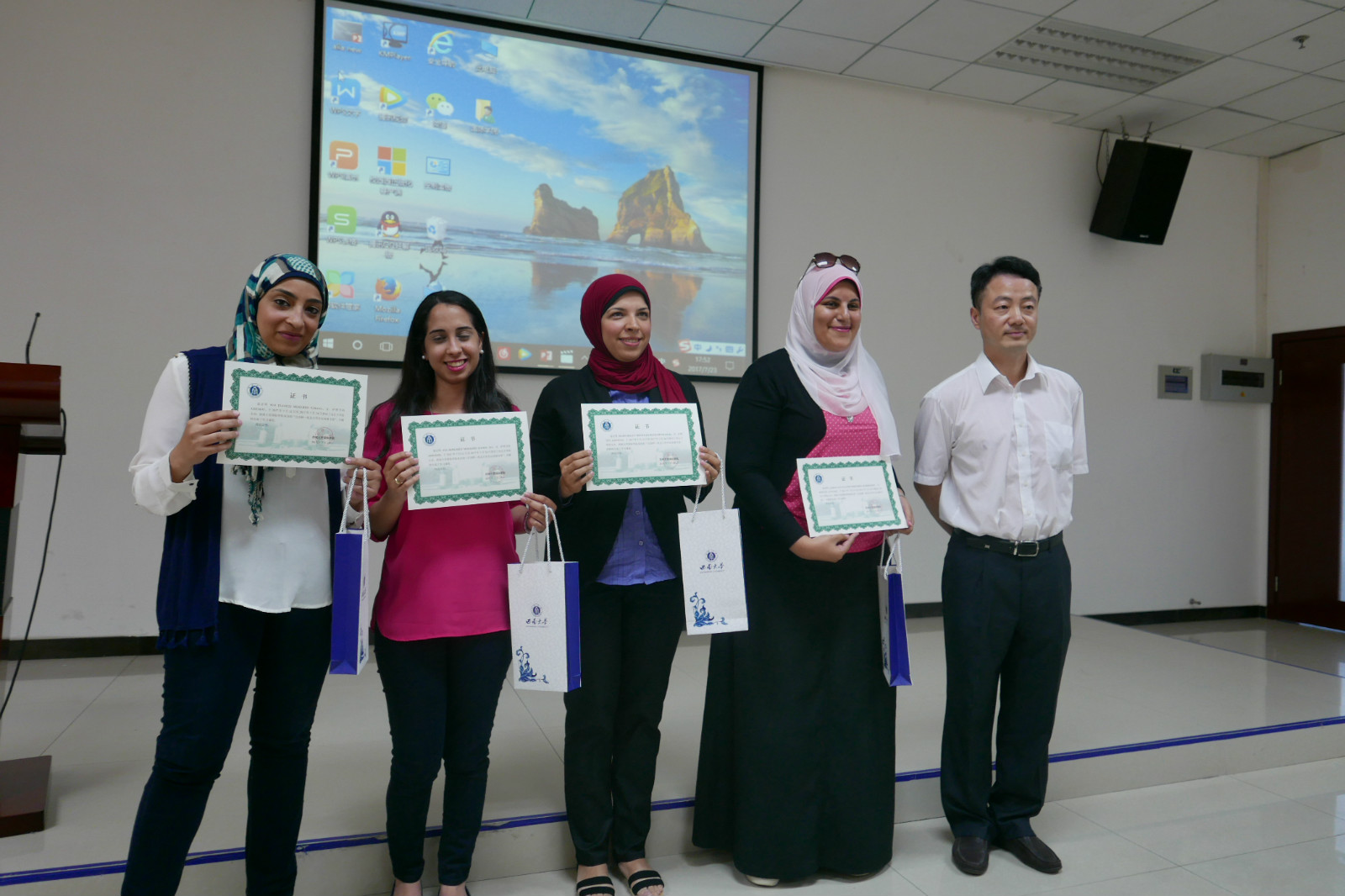 7月16日,sunbet申搏在紫云楼317教室隆重举行开营仪式,副经理李航代表公司致辞,对埃及师生们的到来表示热烈欢迎,提出学习、生活、交友等三方面的期望。sunbet申搏教师代表罗昕老师发言勉励埃及辛勤学子们“采集中华文化的花粉,酿出中埃友谊之蜜”。语伴志愿者代表刘丹同学表示,一定会积极与埃及同学沟通交流,认真做好向导和语伴工作,为两个文明古国的友好往来做出自己应有的贡献。埃及领队教师代表、埃及艾因夏姆斯大学MAI ELSAYED MOHAMED ELBANA博士在回应讲话中说,她非常感谢sunbet申搏官网为本次夏令营所做的精心安排,期待中埃员工们在紧张的学习和文化体验安排中学有所得、建立友谊。参加欢迎仪式的还有sunbet申搏李林泽主任、邱琳老师和全体sunbet申搏语伴志愿者同学。
