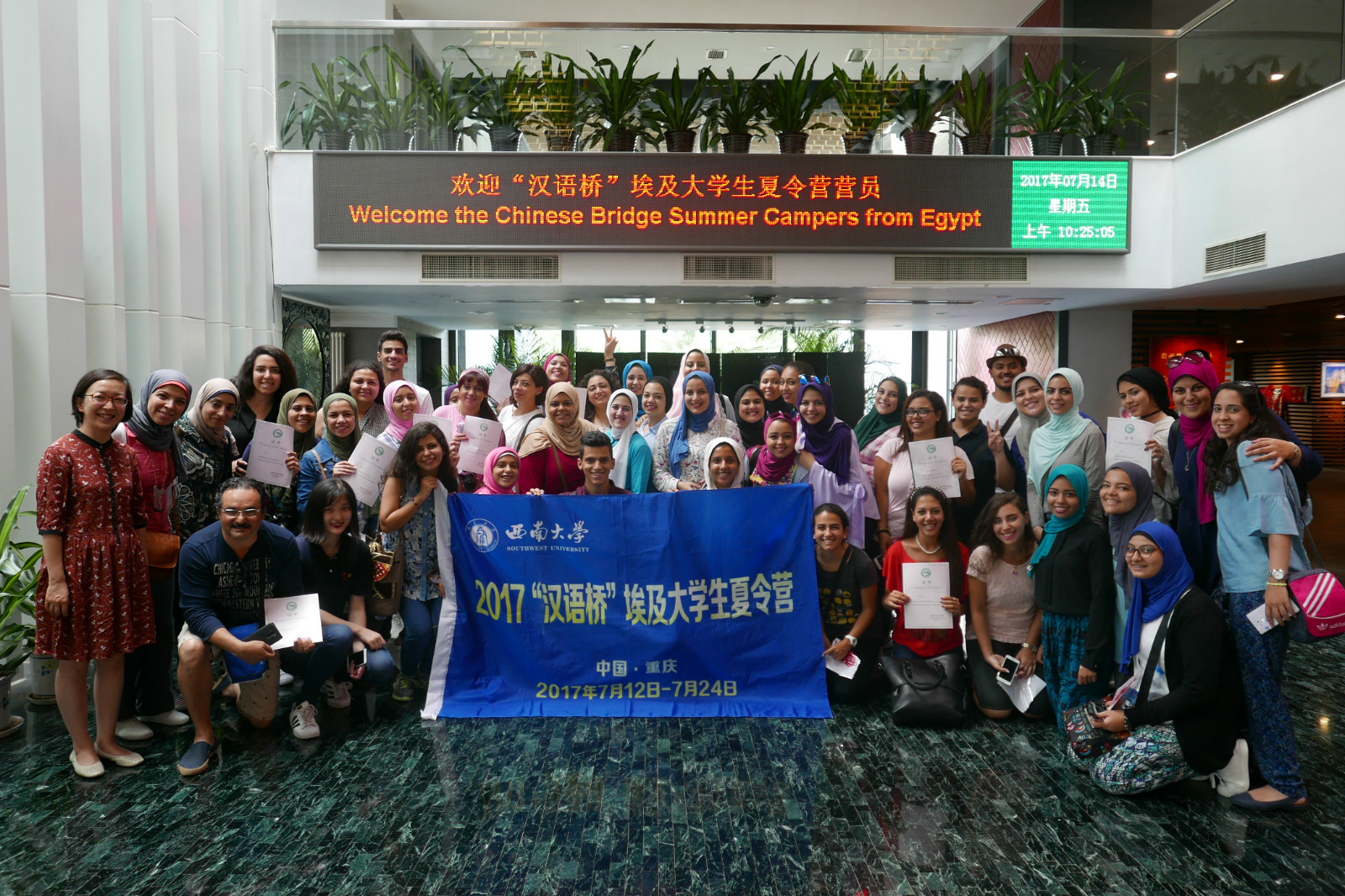 由国家汉办/孔子公司总部主办、公司sunbet申搏承办的2017“汉语桥”埃及老员工夏令营于2017年7月12日开始,7月24日圆满结束,来自二所埃及著名大学——艾因夏姆斯大学和埃及高等国际语言翻译公司——的44名中文专业的师生参加了此次夏令营活动。